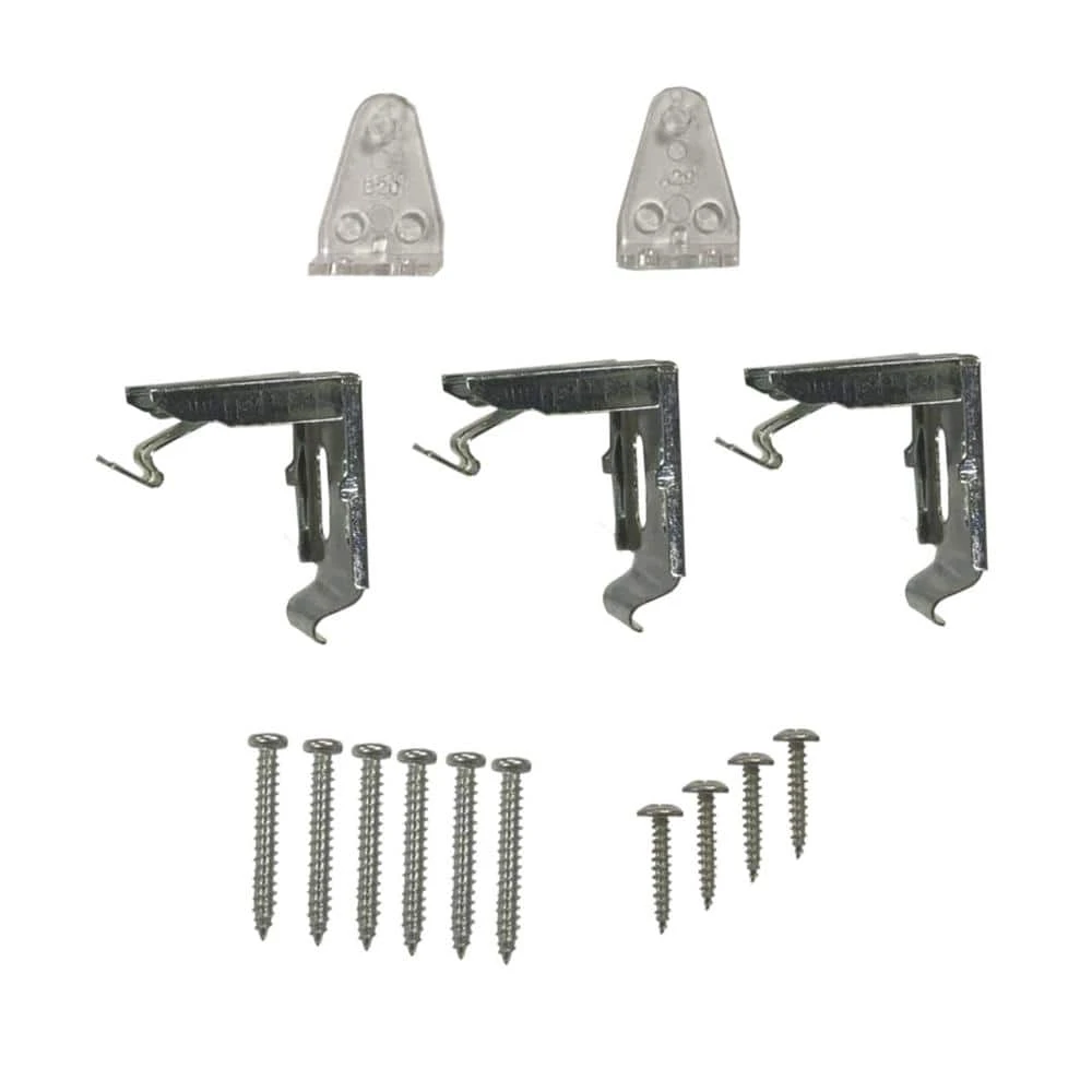 These replacement brackets are compatible for Cordless Vinyl and Aluminum Blinds by Hampton Bay. The bracket set gives you the choice to mount your blinds inside or outside of your window frame. This package includes (3) installation brackets, (2) hold down brackets, and hardware. Ideally used for moving and re-installing vinyl and aluminum blinds.