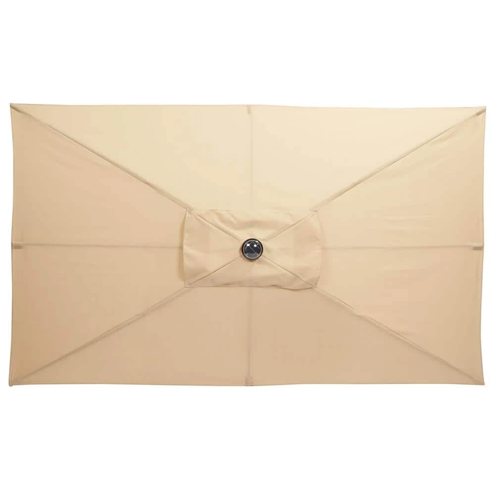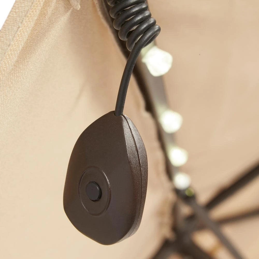 Give your patio or deck a perfect finishing touch with this 10-foot by 6-foot Hampton Bay outdoor umbrella. The push-button tilt system makes it easy to shade your outdoor space, and the crank-lift system allows for effortless opening and closing. Durable olefin fabric provides cooling shade on hot summer days. Use the solar-powered lights to brighten your backyard at night. A cafe tan color scheme pairs perfectly with classic and contemporary decor themes, and the rust-resistant aluminum make this Hampton Bay outdoor umbrella a lasting addition to your furniture grouping.