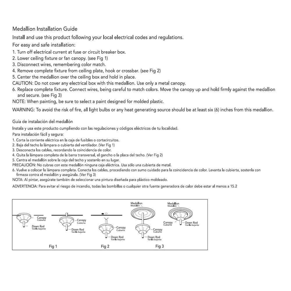- Ceiling medallion offers a simple backdrop for fans and lights