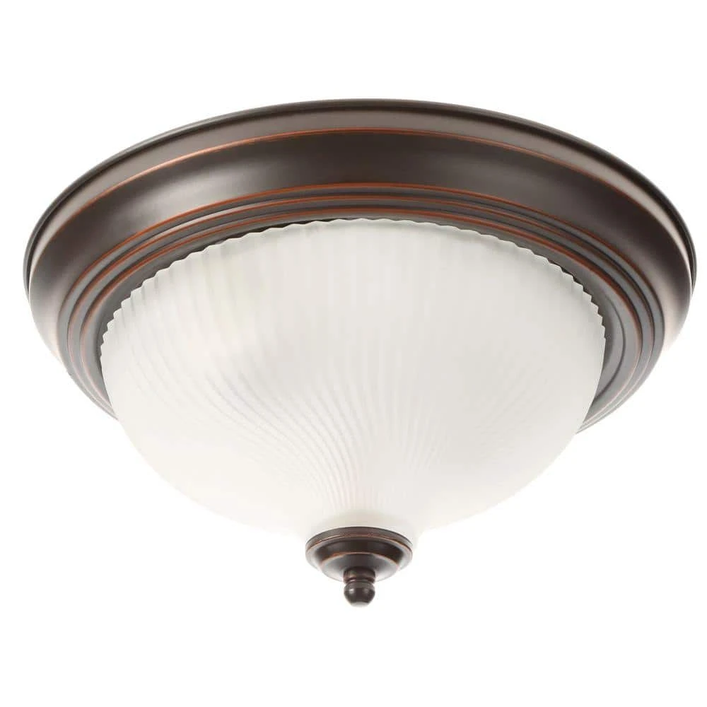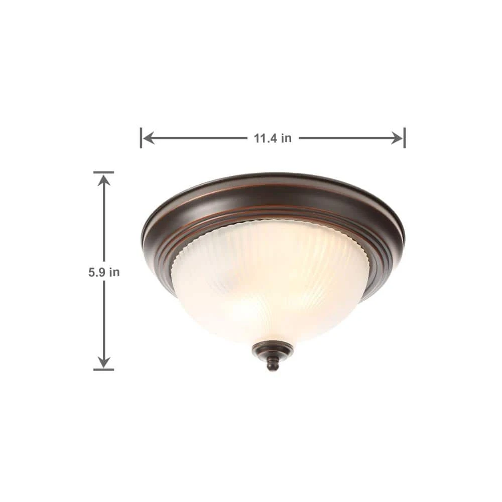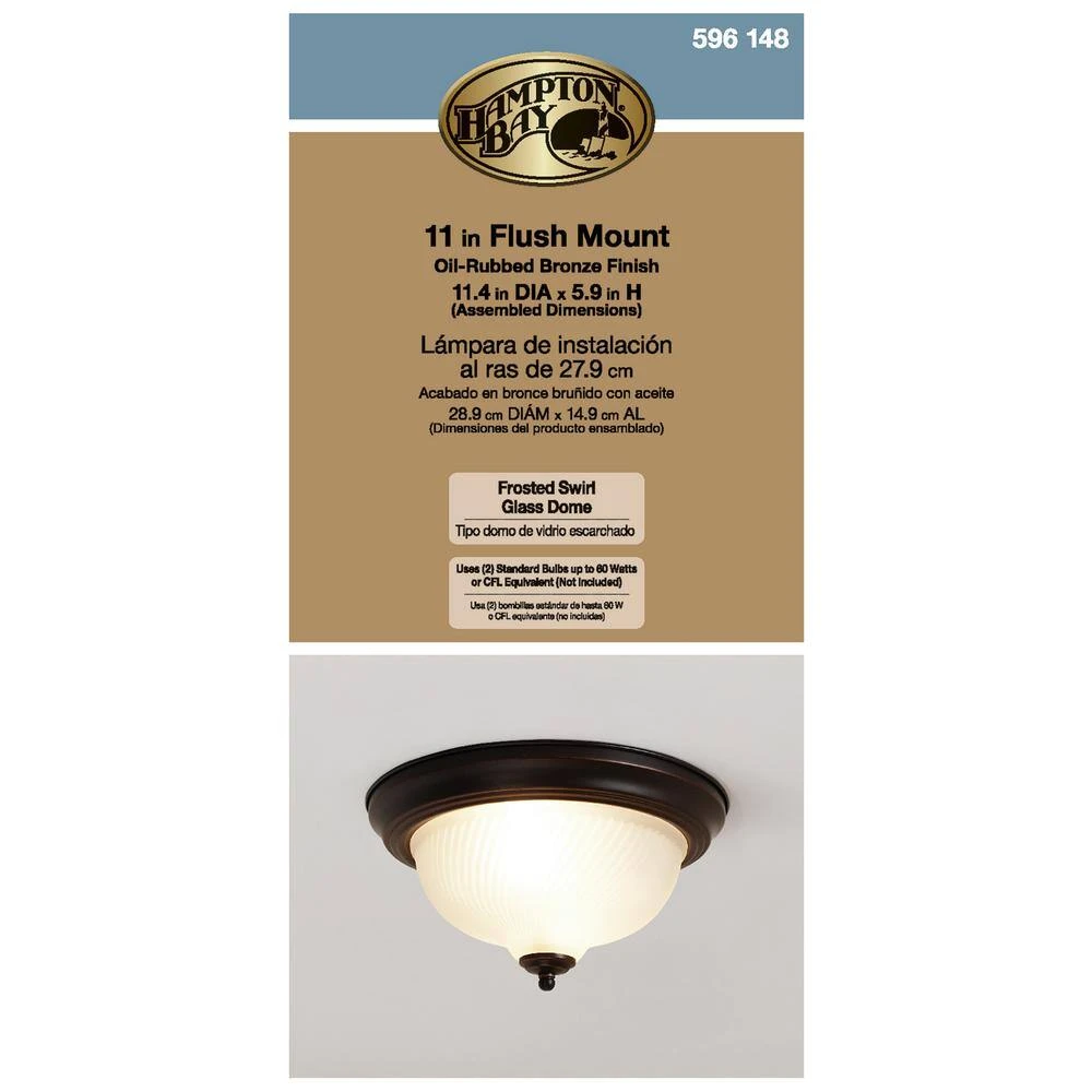 Add classic style to your den, living room or other interior spaces with the Oil Rubbed Bronze 2-Light Flush Mount from Hampton Bay. Featuring a clean and timeless design with an oil rubbed bronze finish and frosted swirl glass dome, this fixture will complement practically any decor style. Coordinates easily with other oil rubbed bronze pieces from Hampton Bay for a polished and custom look you will enjoy for years.