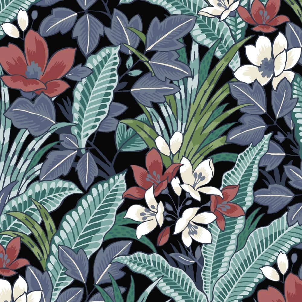 - Blues and teals in this black tropical pattern offers a traditional look but with a fun twist