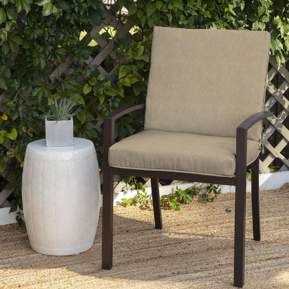 Give your chair an inviting and refreshed look with the Outdoor Dining Chair Cushion from Hampton Bay. The single welt design adds an up to date, upscale look to your patio chairs. This cushion is ultra-comfortable with a superior polyfill and durable with exclusive Cushionguard acrylic fabric that resists fading, repels water, stains and spills all while retaining the fabrics natural softness. Coordinate with other solids, stripes, and patterns for a polished and sophisticated setting you will enjoy season after season.