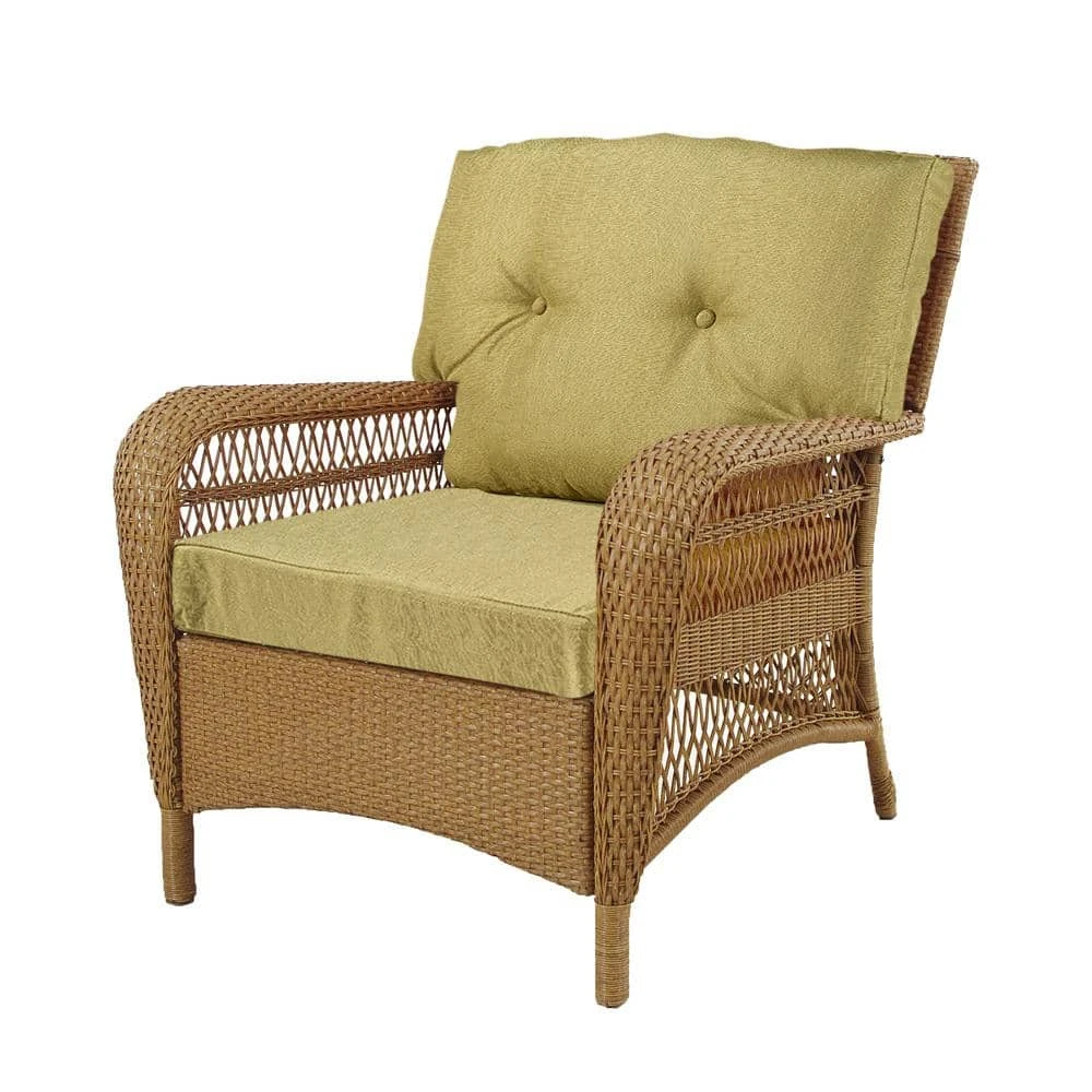 - Plush green bean color woven olefin fabric cushions for comfort