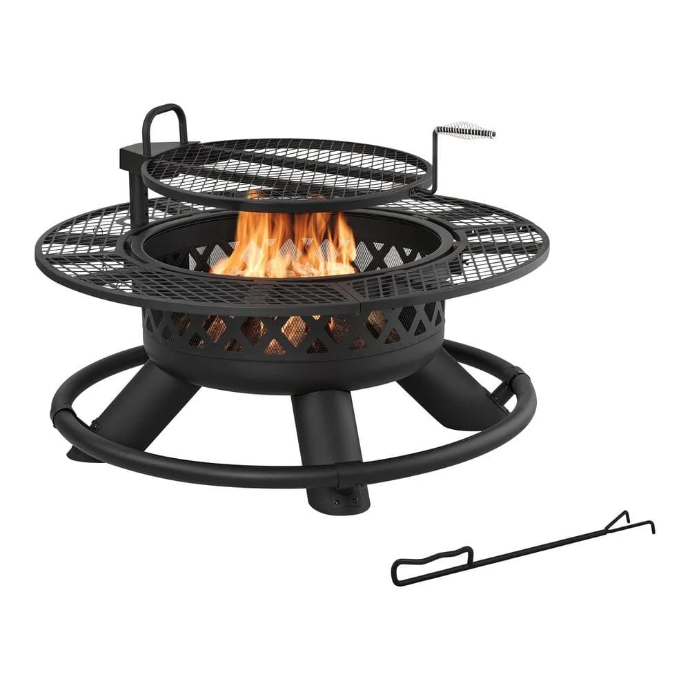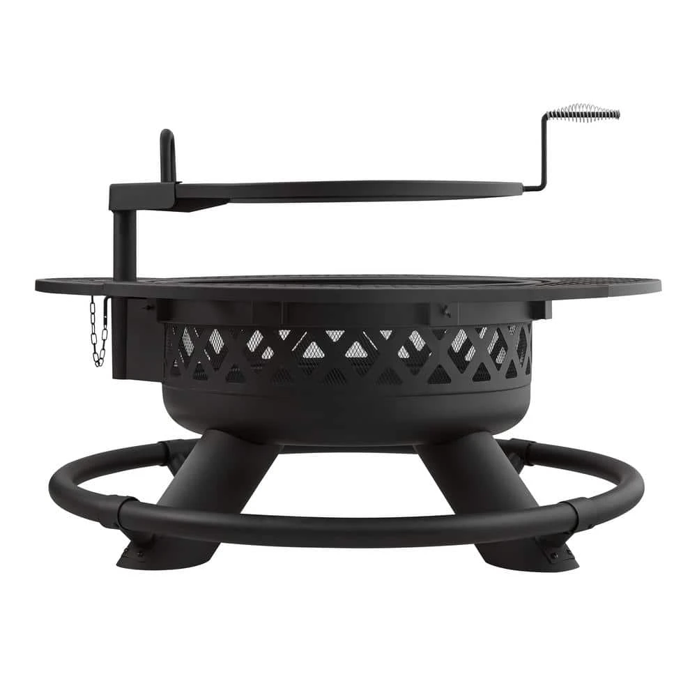 This 47 in. outdoor steel fire pit from Hampton Bay features a two-in-one design ideal for outdoor heating or grilling. Its unique features include a cooking grate for convenient grilling and a poker. The deep bowl design offers plenty of room for firewood and a 360° view of the fire.