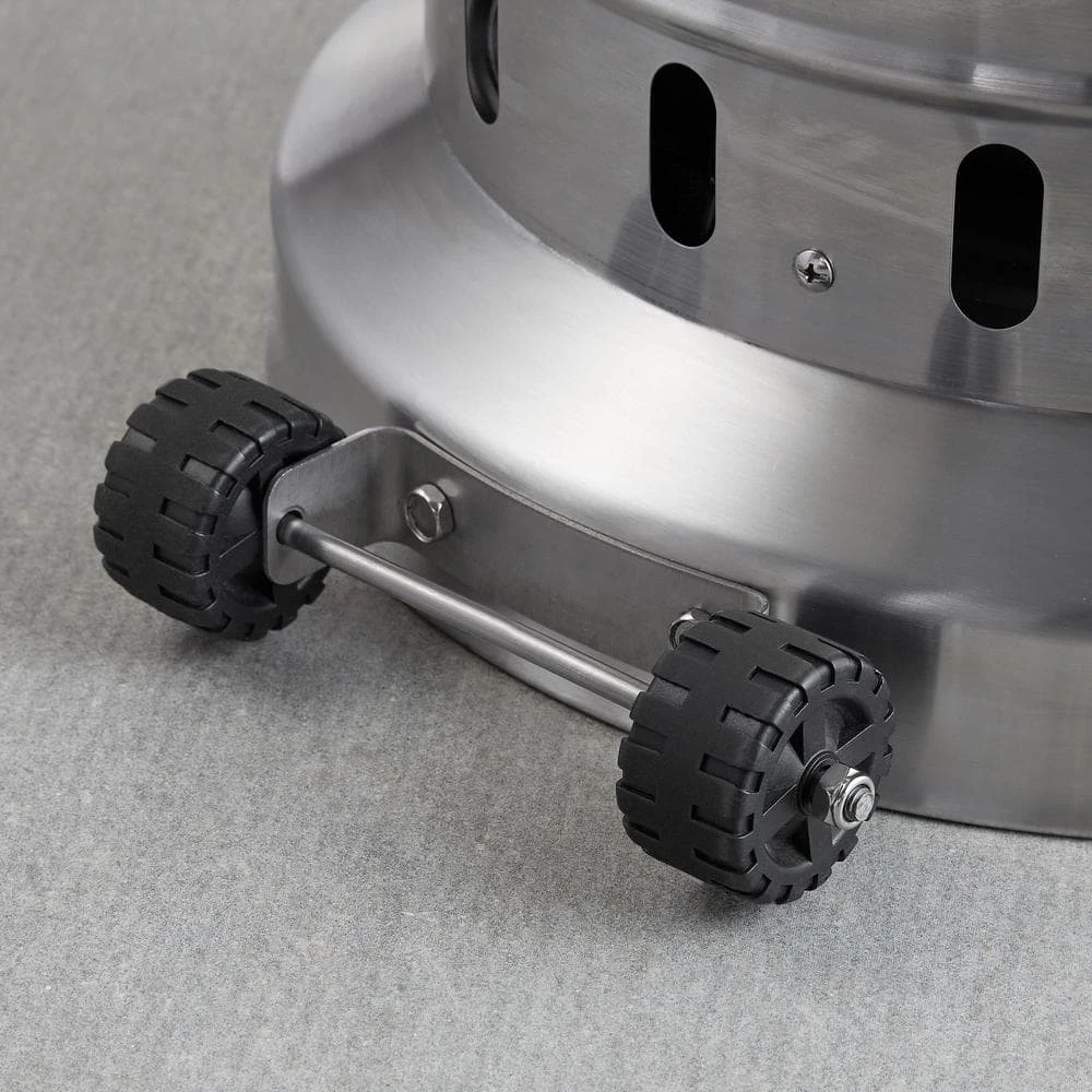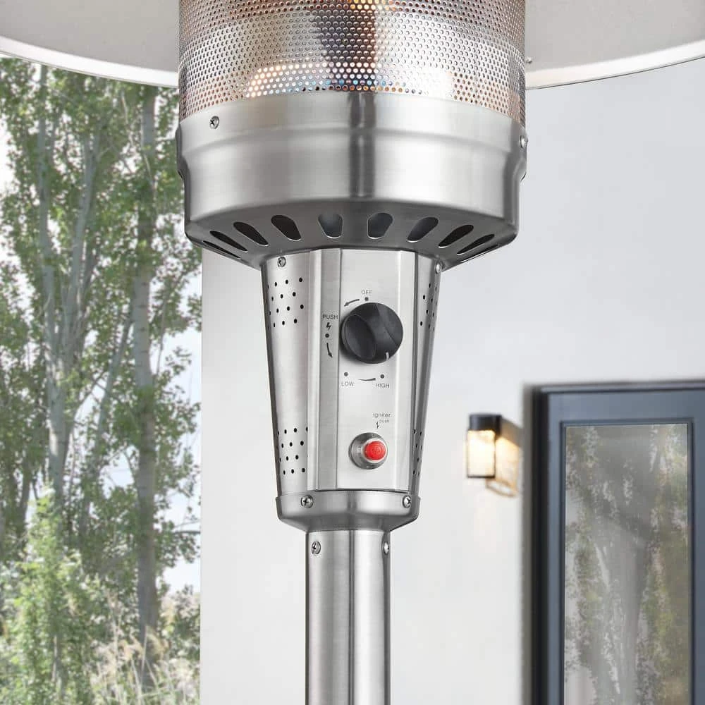 Entertain regardless of the weather with this Hampton Bay 48,000 BTU gas patio heater. A heat grid and tough stainless steel burners deliver a heat radius of 215.27 sq. ft. Starting the heater is easy, thanks to the electronic ignition. You can easily move the heater around your space thanks to the rotating wheels and the anti-tilt safety device keeps it in place.