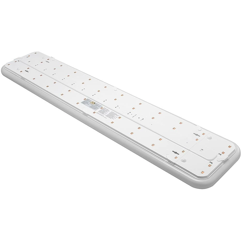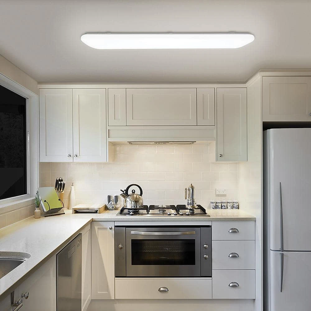 Hampton Bay 4ft x 10in. Rectangular Light Fixture LED Flush Mount is designed to replace outdated 100-Watt fluorescent tube and uses 60% less energy compared to conventional lighting units. It has a durable acrylic smooth lens with crystal-clear illumination and no yellowing over time. Its lightweight construction makes for easy installation while the LED technology ensures eco-friendly, long-lasting service and is maintenance free with no bulbs to replace. Ideal for kitchen, laundry room, garage, basement, storage room, hallways, lobby, warehouse offices and restrooms.