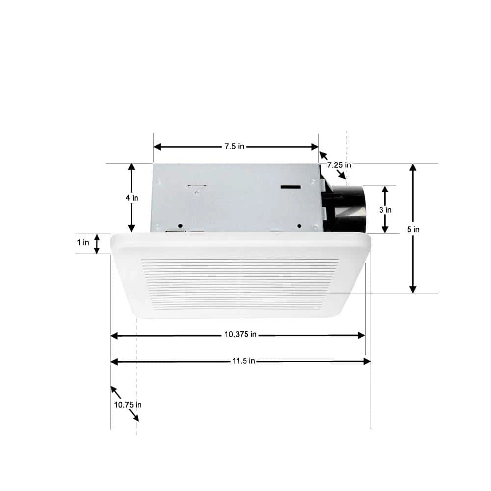 - Manages odor and moisture removal in smaller bathrooms – up to 50 sq. ft.