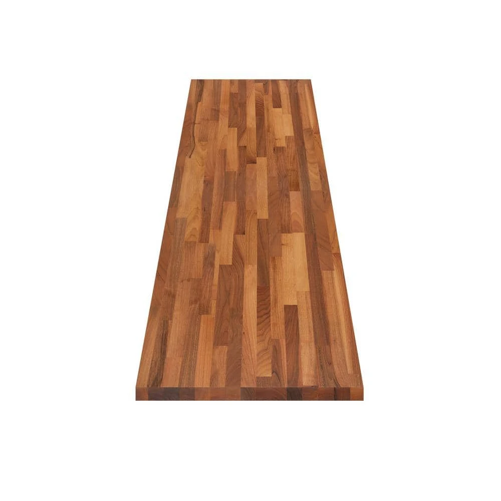 Complete a range of DIY projects with this Hampton Bay European dark walnut unfinished butcher block island countertop. The unfinished surface is ready for staining and finishing, leaving enough leeway for customization. Featuring rich shades of brown, this island countertop draws the eye with a unique, appealing woodgrain. Solid walnut wood is hard and dense, offering dependable strength. Whether you’re creating furniture for your kitchen, bathroom or office, this Hampton Bay European dark walnut unfinished butcher block island countertop lets you integrate a piece of nature into your home.