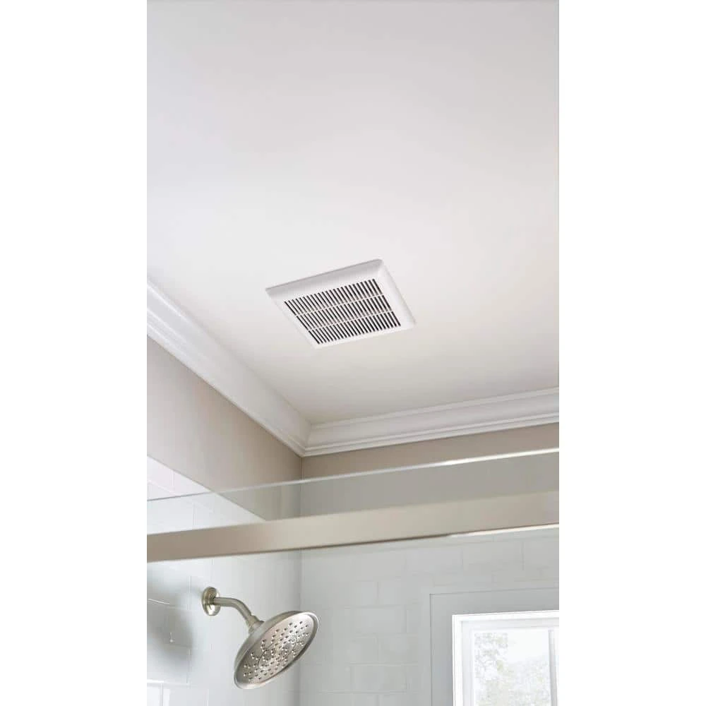 The Hampton Bay 80 CFM exhaust fan will reduce moisture in your bathroom to help prevent mildew while running at 2.0 sones. The exhaust fan is designed to manage airflow in bathrooms as large as 85 sq. ft. The exhaust fan has high quality AC inductor capacitor motor. The UL-Listed fan offers a low-profile grille style for an attractive look.