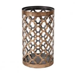 Create a charming look for your space with this 9.65 in. Brown Metal and Glass Outdoor Patio Candle Holder. It features an aged gold finish. You can use this in an indoor or outdoor space.