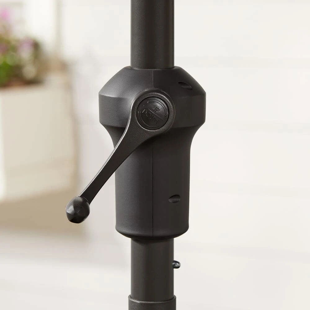Add a pop of color to your deck or patio and stay cool at the same time with the 9 ft. Crank and Tilt Patio Umbrella in Sky Blue. Featuring a polyester fabric canopy that is weather and fade-resistant, this umbrella will provide lasting protection and charm. It is equipped with a tilt function to position the umbrella at your desired angle and the crank makes it easy to close when not in use.