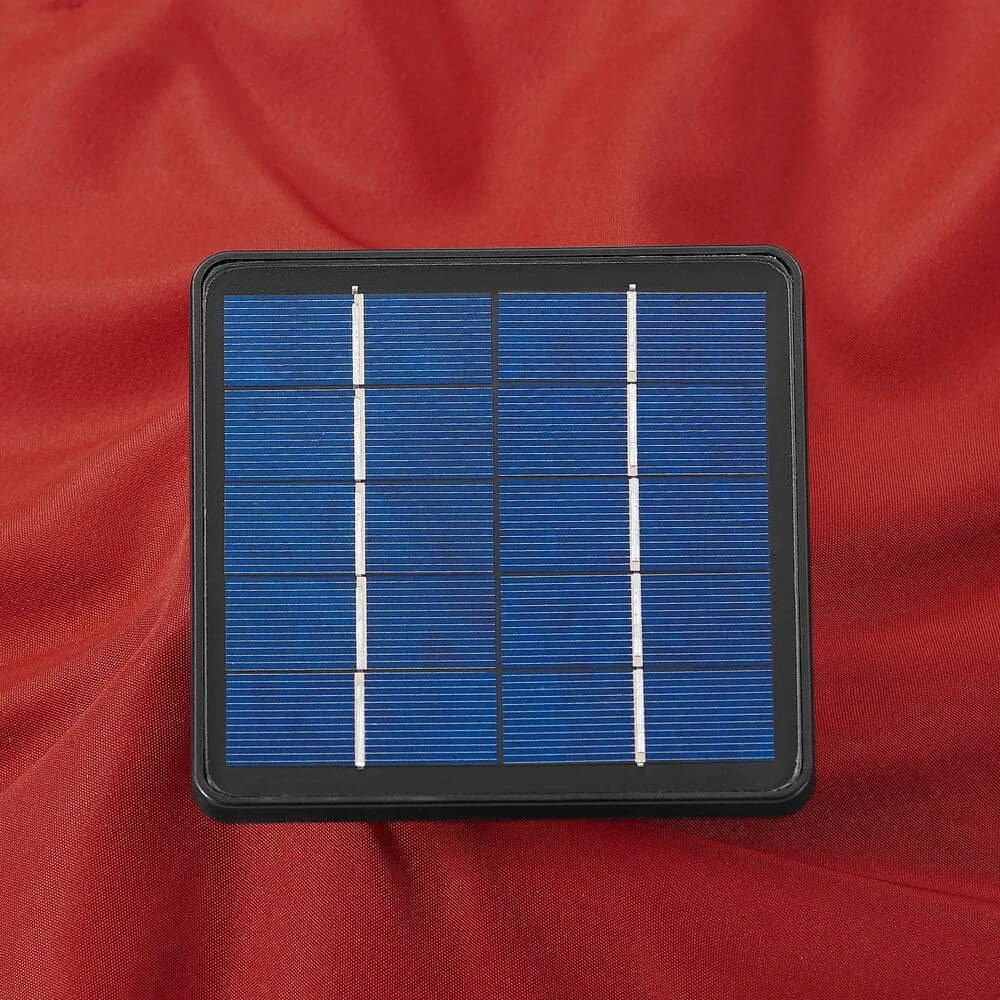 This rust-resistant powder-coated aluminum pole has LED illuminating strips. Powered by rechargeable batteries that provide hours of ambient light at night. Solar panel automatically charges the batteries during the day. Weatherproof switch to turn the lights on or off when needed.