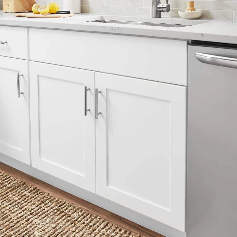 - Premium painted finish in Alpine White, leaving cabinets with a durable, easy to clean surface