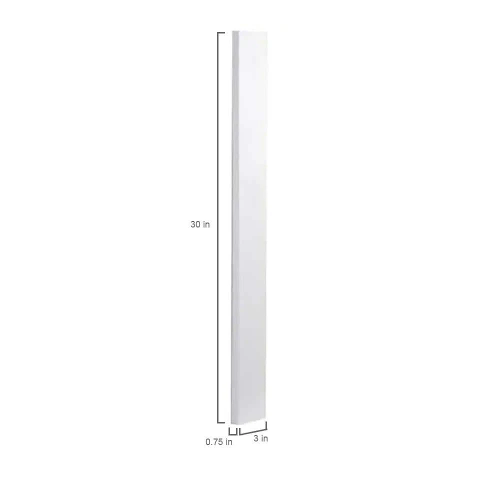 - Kitchen cabinet filler trim measures 3 in. W x 30 in. H x 0.75 in. D