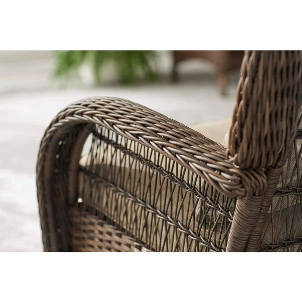 With rich traditional styling, this stationary wicker lounge chair from the Beacon Park collection adds sophistication to your outdoor living space. It features a sturdy, rust-resistant frame that supports intricately woven, rich brown wicker. For added comfort, there are wide, curved armrests that make the chair even more relaxing. It can be used as a standalone piece or be combined with other Beacon Park pieces for a complete look. The cushions are part of the Choose Your Own Color collection; choose your own slipcover color to reflect your style and inspire your home.