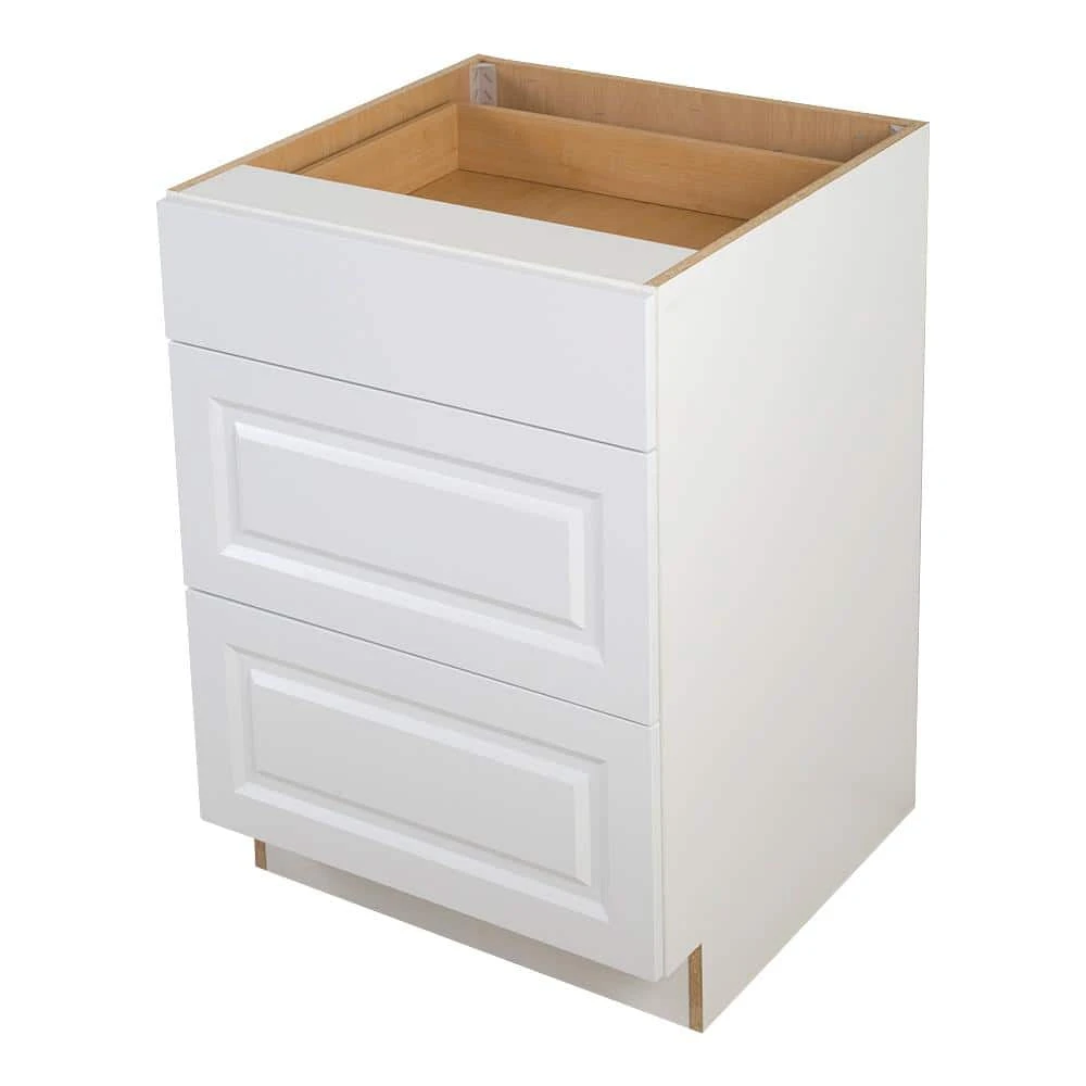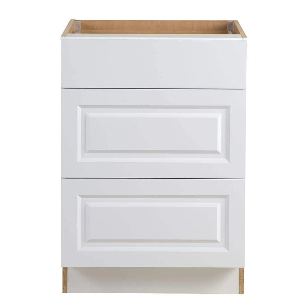 ​Conveying a transitional, yet classic, look that is sure to evoke a timeless appearance, the Benton 24 in. W assembled base cabinet is beautifully crafted with a slab drawer front and 2 raised panel RTF drawers. The Benton collections white finish offers a brilliant, solid white complexion, with a natural maple wood interior, that is sure to add a touch of brilliance to any room. Including a full overlay door style, the base cabinet is fully assembled making it easy for you to build the kitchen, bathroom, laundry room or office of your dreams.