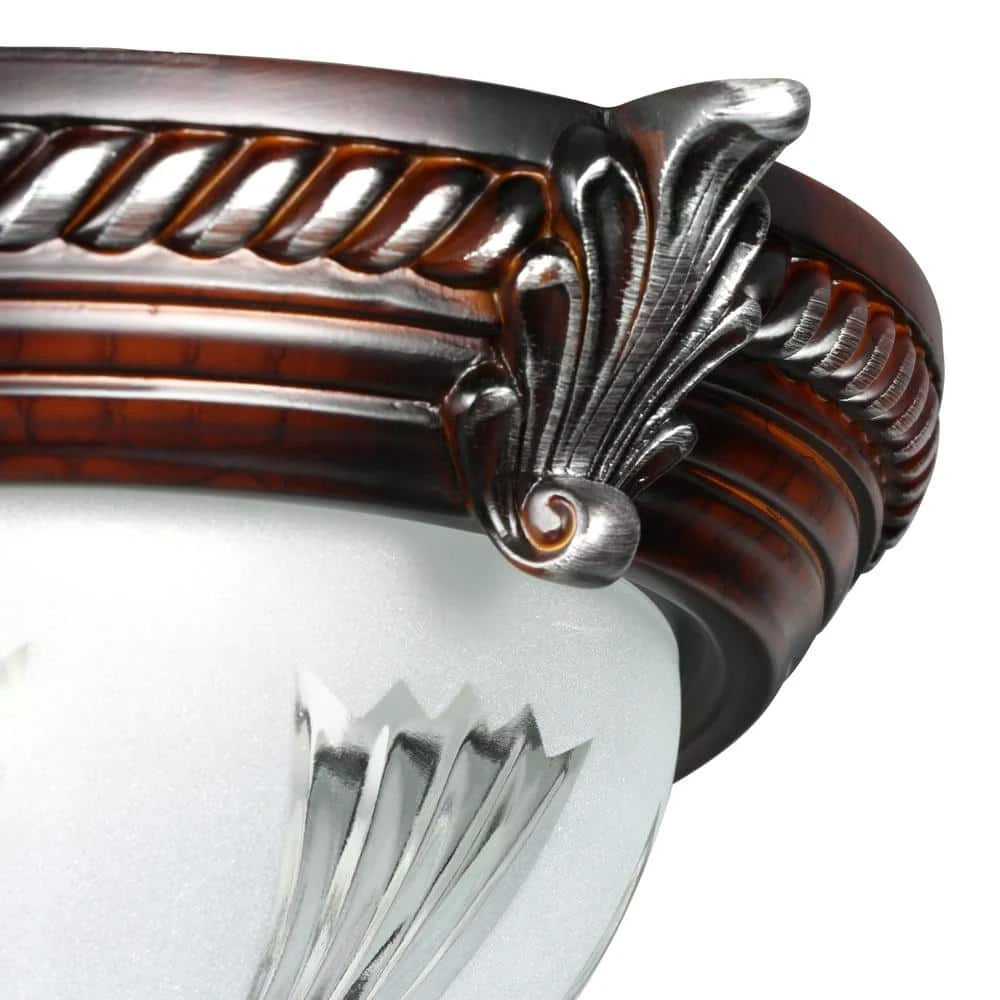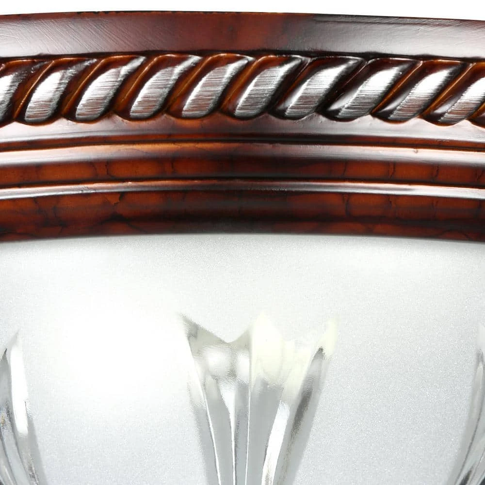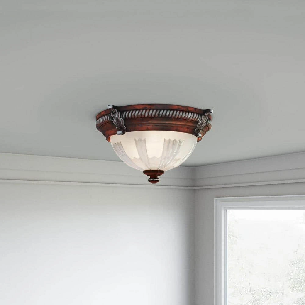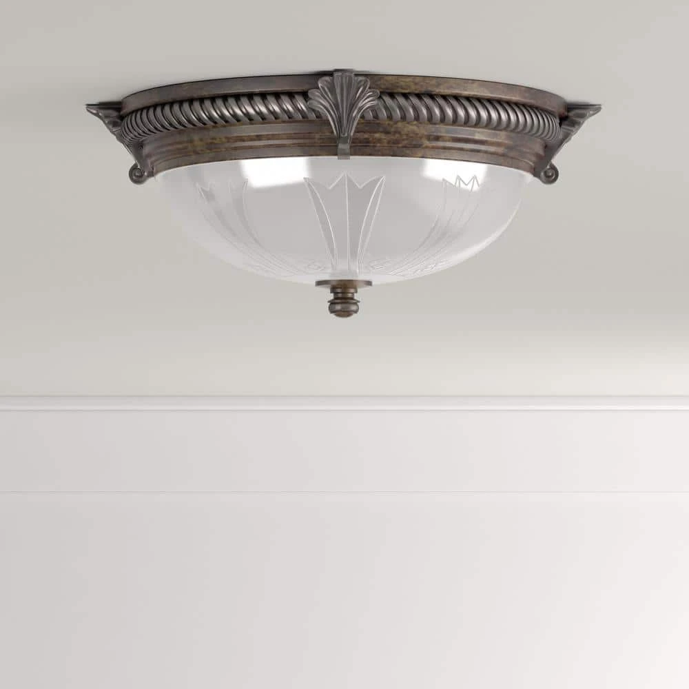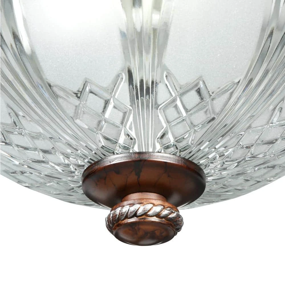 Rich and elegantly styled, the Bercello Estates 2-Light Volterra Bronze Flushmount from Hampton Bay will complement a variety of home styles and decor. A simple way to upgrade your bedroom, hallway or den, this fixture features a dark volterra bronze finish that is beautifully contrasted with a clear and frosted glass shade with striking carved details. Easy to install, pair with other pieces from the Bercello Estates Collection for a custom and polished look you will cherish and friends will admire.