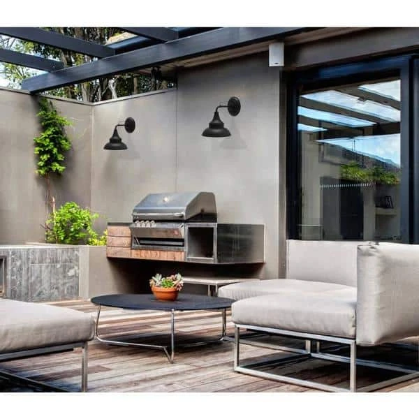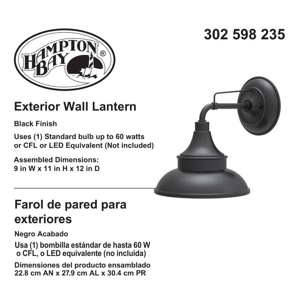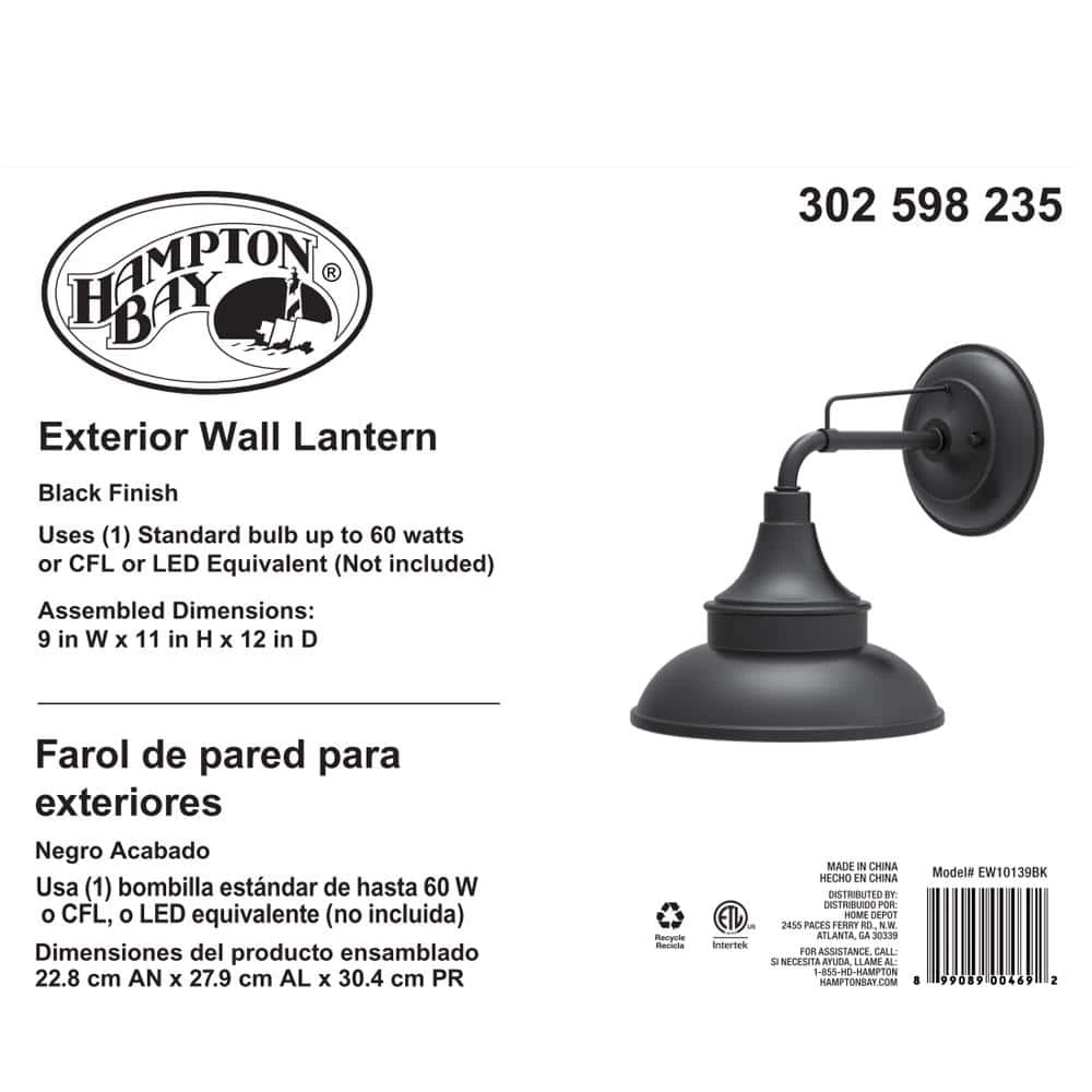 The Hampton Bay Outdoor Black Barn Light Wall Sconce is designed with a beautiful Black finish that will enrich your home’s appearance with a days gone by look. Painted in rich deep Black, the wall light offers illuminating ambiance and appearance to any given outdoor area. Uses 1-60-Watt maximum standard medium base bulb or CFL equivalent (not included). Compatible with Vintage Edison or LED bulbs.