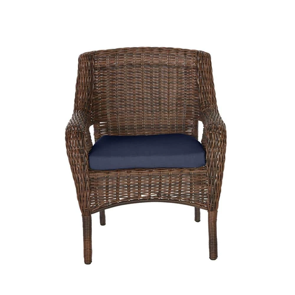 Give your outdoor living space an upgrade with this wicker dining chair set from the Cambridge Collection by Hampton Bay. The all-weather resin will provide many seasons of enjoyment, while the multi-tone wicker finish will fit with any style you select for your outdoor decor. This set is part of Home Depot’s Choose Your Own Color program to create a cohesive, polished look; choose your own slipcover color for the cushions to reflect your style and inspire your home. Whether placed on your patio, porch or sunroom, the chairs will add a touch of elegance to your space.
