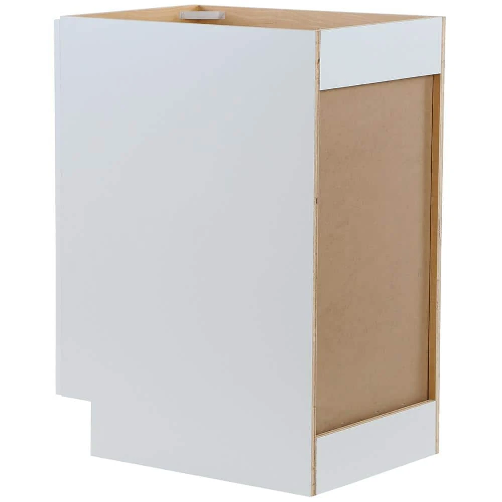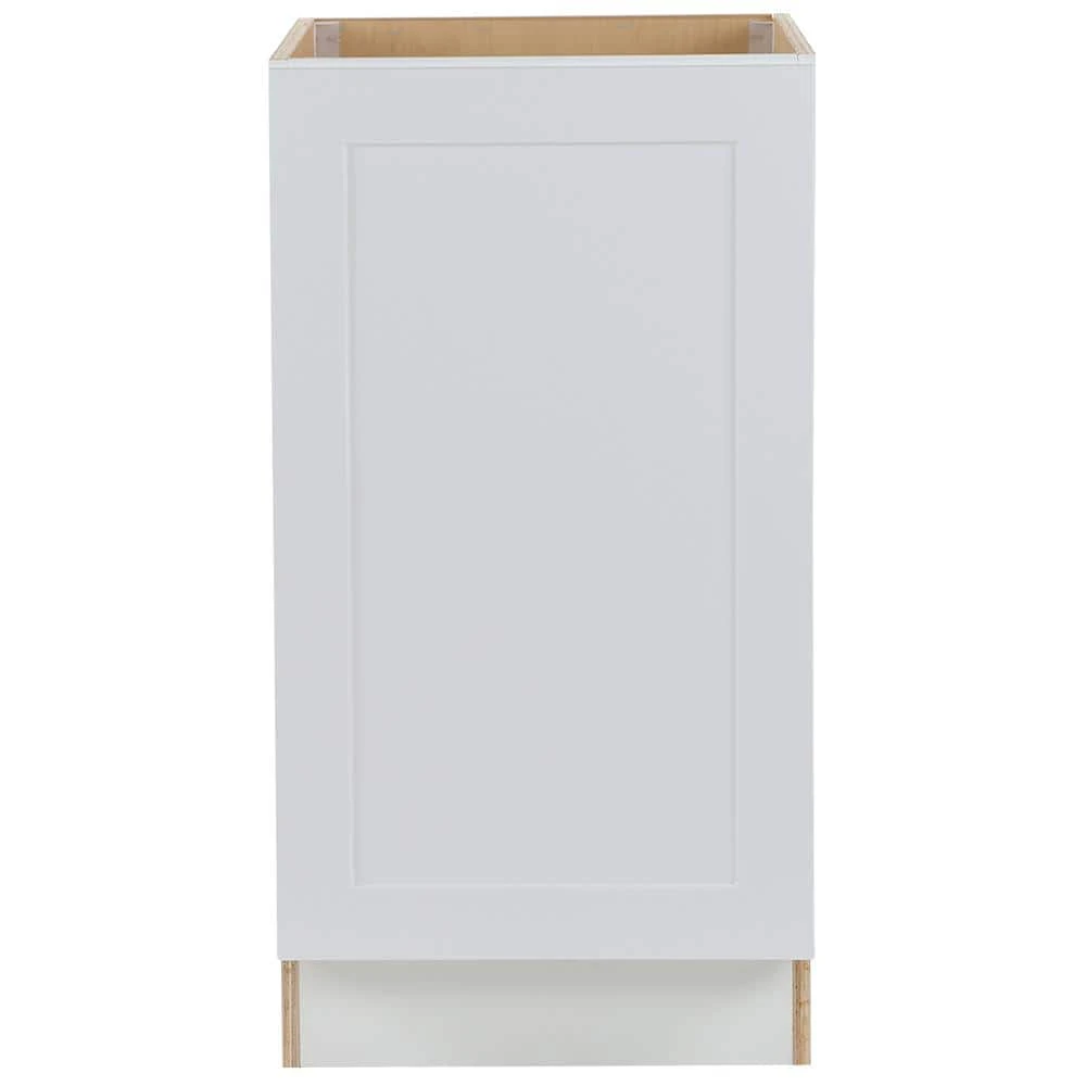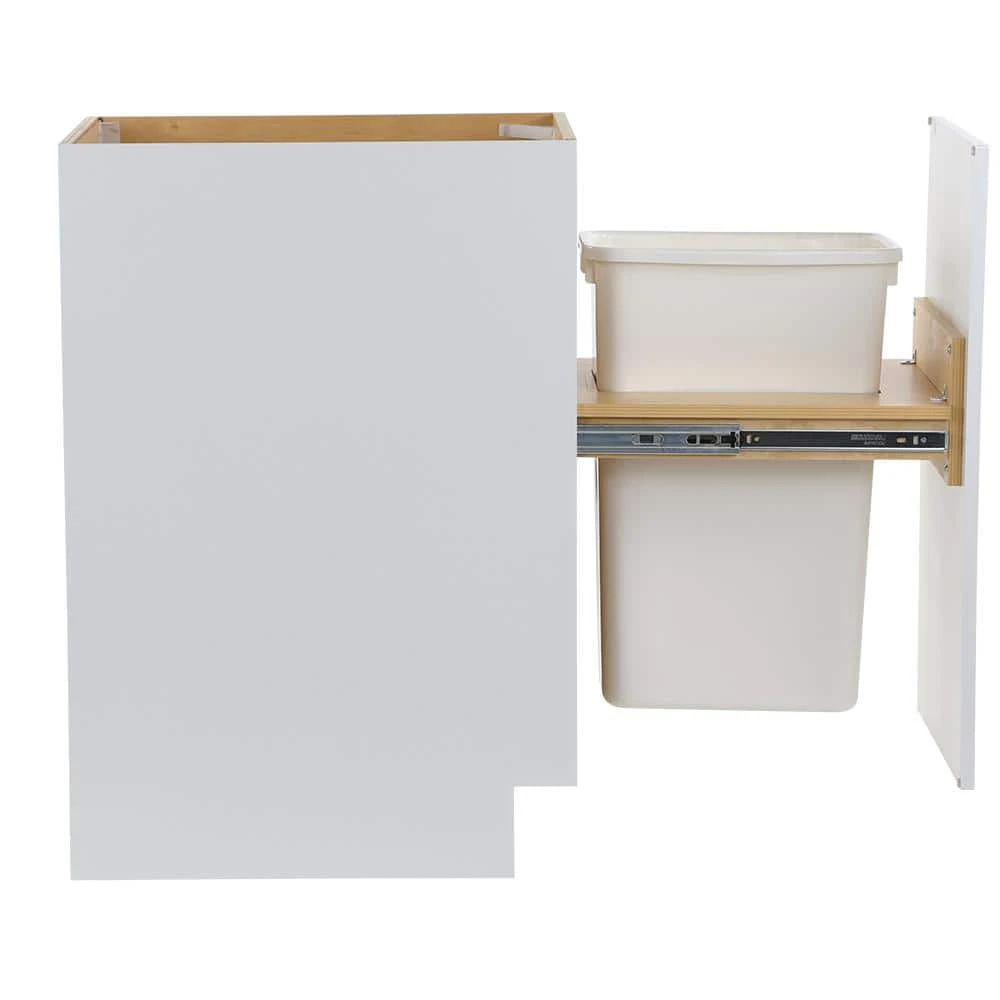​Giving you that transitional look that will evoke a chic presentation, the Cambridge 18 in. assembled base cabinet with pull out trash can is beautifully crafted with 1 shaker style RTF door and full extention pull out trash can compartment. The Cambridge collections white color offers a brilliant solid white finish, with a natural plywood interior, that is sure to add a touch of radiance to any room. Including a full overlay door style, the base cabinet is fully assembled making it easy for you to build the kitchen, bathroom, laundry room or office of your dreams.​