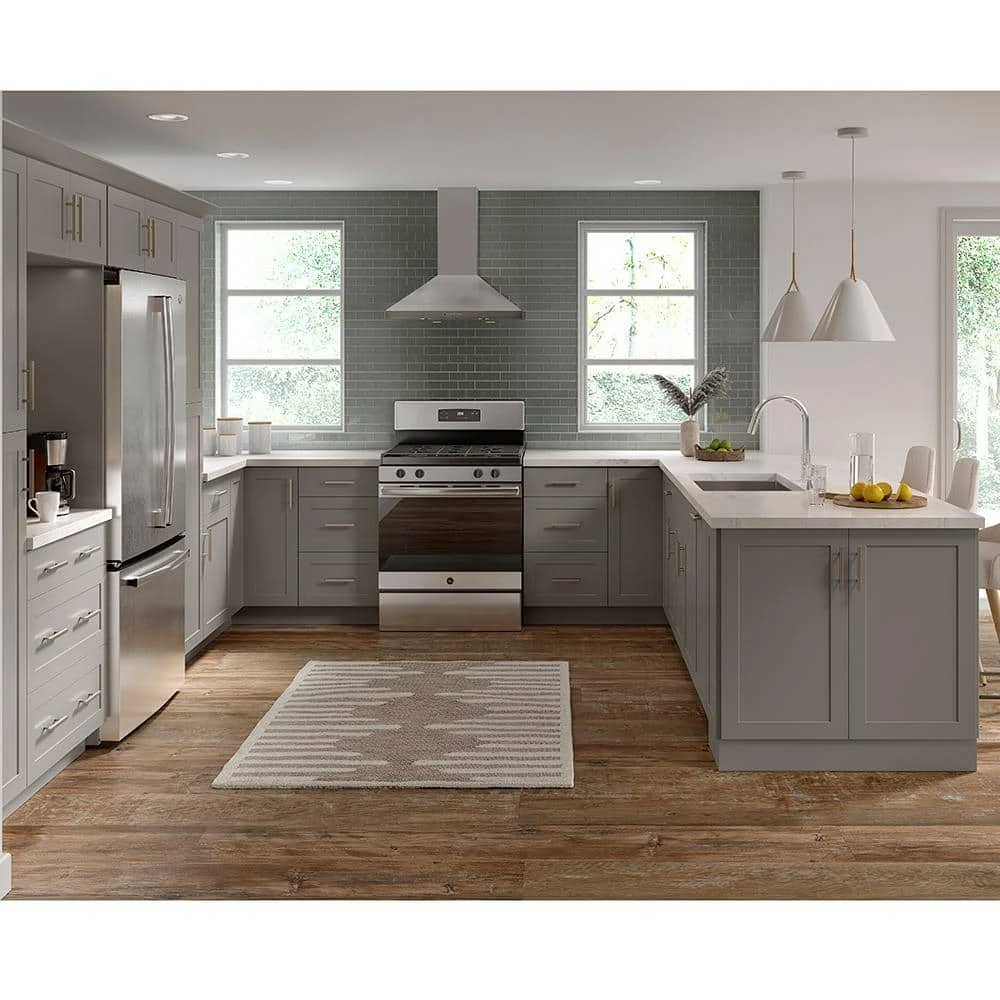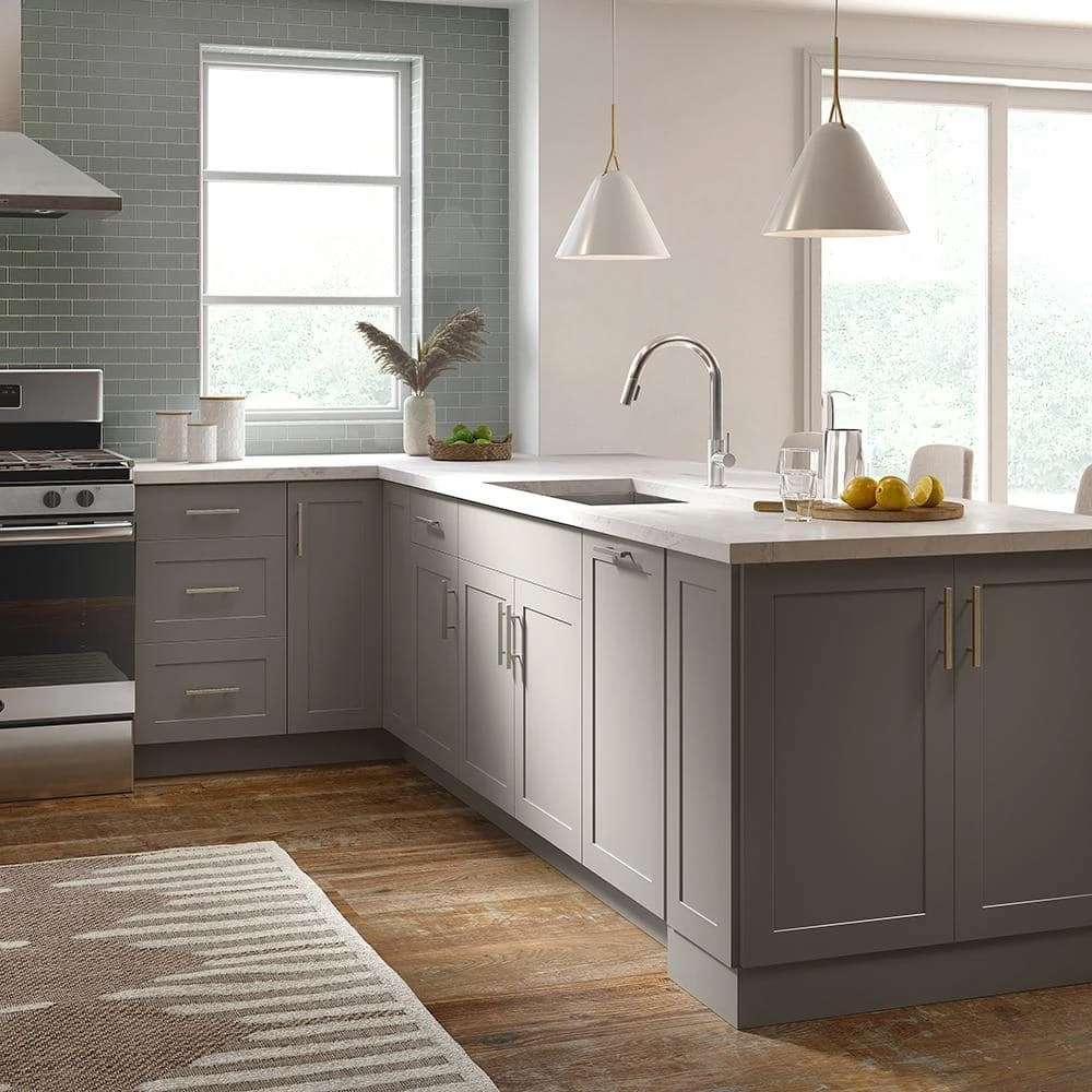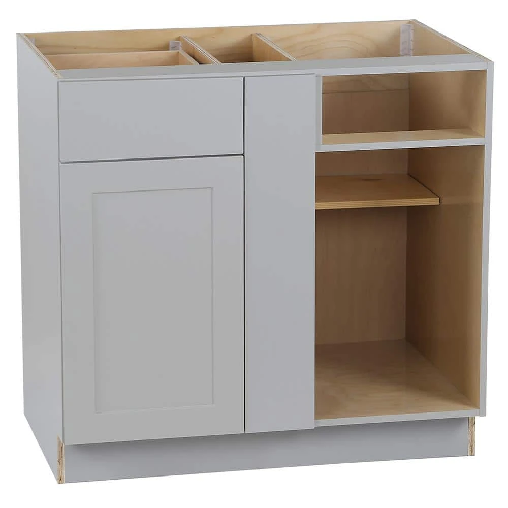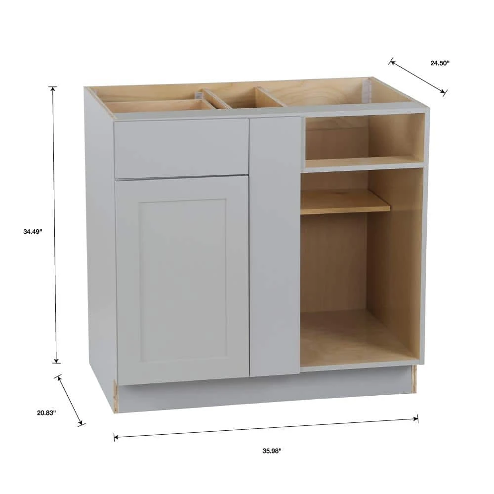 Withstand ever-changing styles with the transitional Cambridge 36 in. W Assembled Blind Base Cabinet in Gray. This Cambridge Collection in Gray cabinet offers a taupe-gray finish slab drawer and shaker style RTF door with an all plywood box cabinet and natural wood interior for a versatile appearance and durability. Designed with a full overlay door style, the base cabinet is fully assembled making it easy for you to build the kitchen, bathroom, laundry room or office of your dreams.