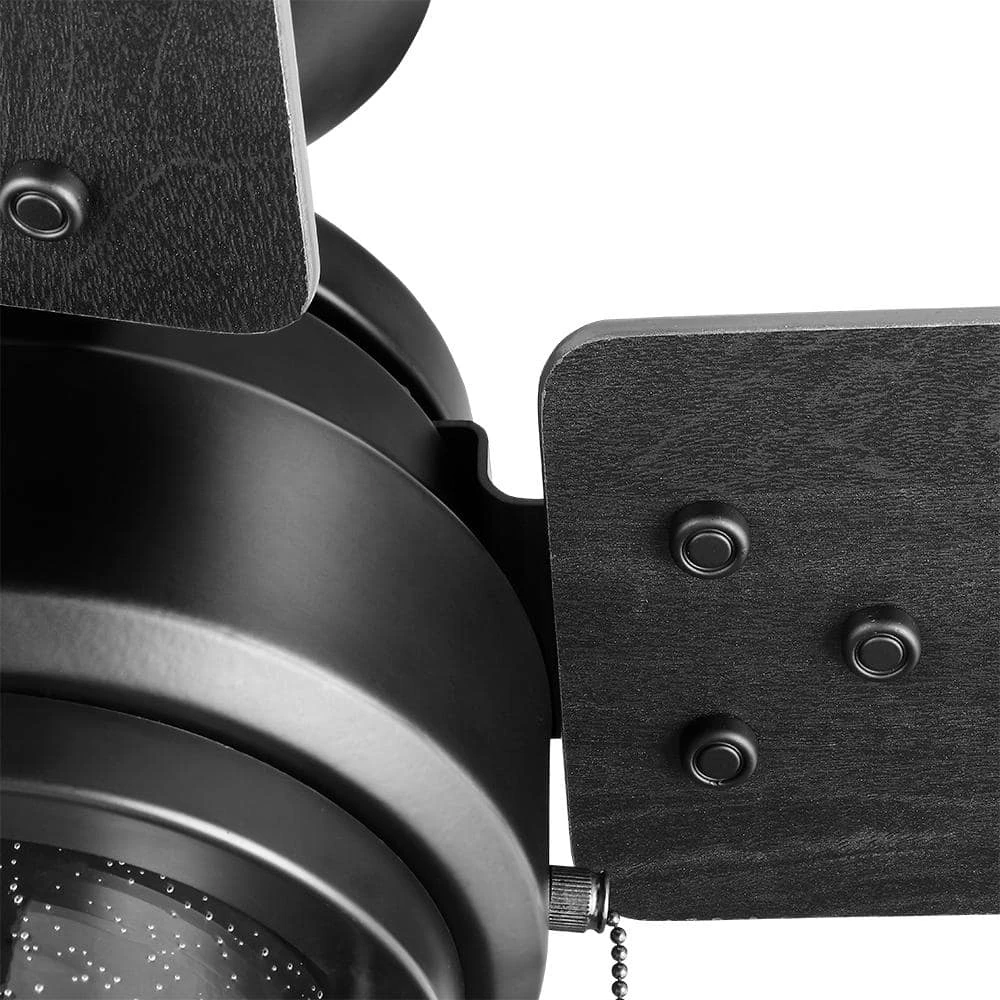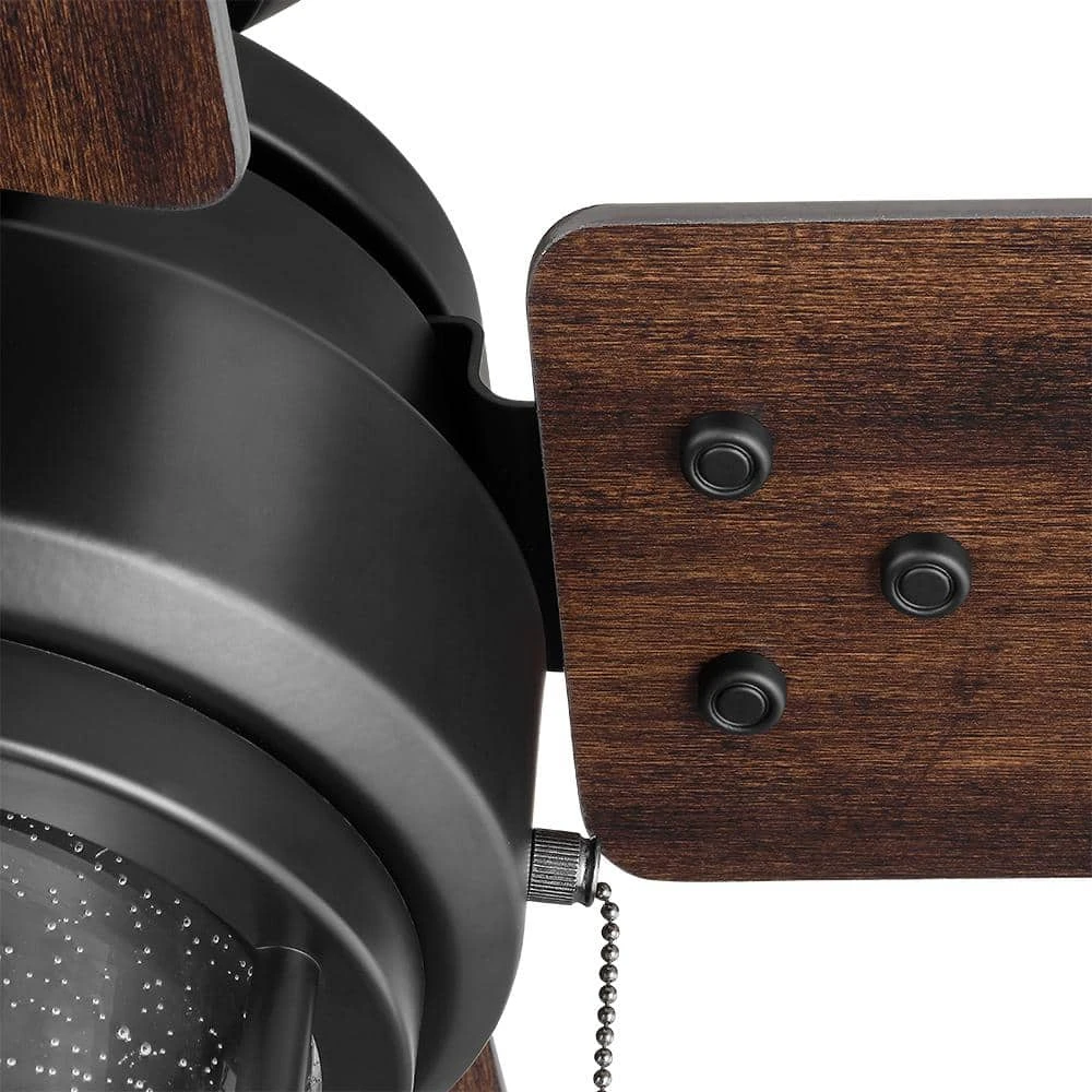 Drawing from nautical inspiration, the 44 in. Cedar Lake ceiling fan by Hampton Bay combines style and performance to produce this beauty. The Cedar Lake is damp rated making it perfect for outdoor covered locations like porches and patios and it looks great indoors as well. The fan’s stark matte black finish is paired with 4 reversible blades in wenge and espresso finishes to complement your decor. The light features a stunning clear seeded glass shade enclosed in a decorative cage and uses 1 vintage style 6.5-Watt LED bulb (included).