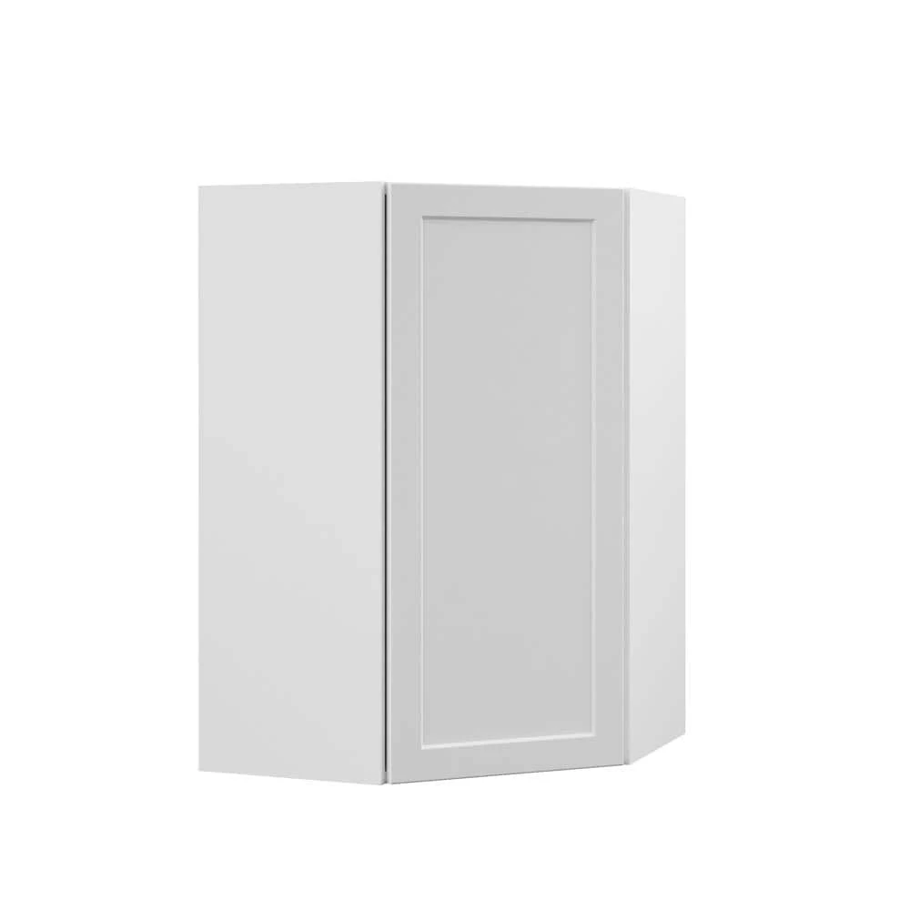 The Hampton Bay Designer Series corner wall cabinet adds needed storage, organization and beauty to your kitchen design. Doors have soft-close hinges. The cabinet is preassembled for hassle-free installation.
