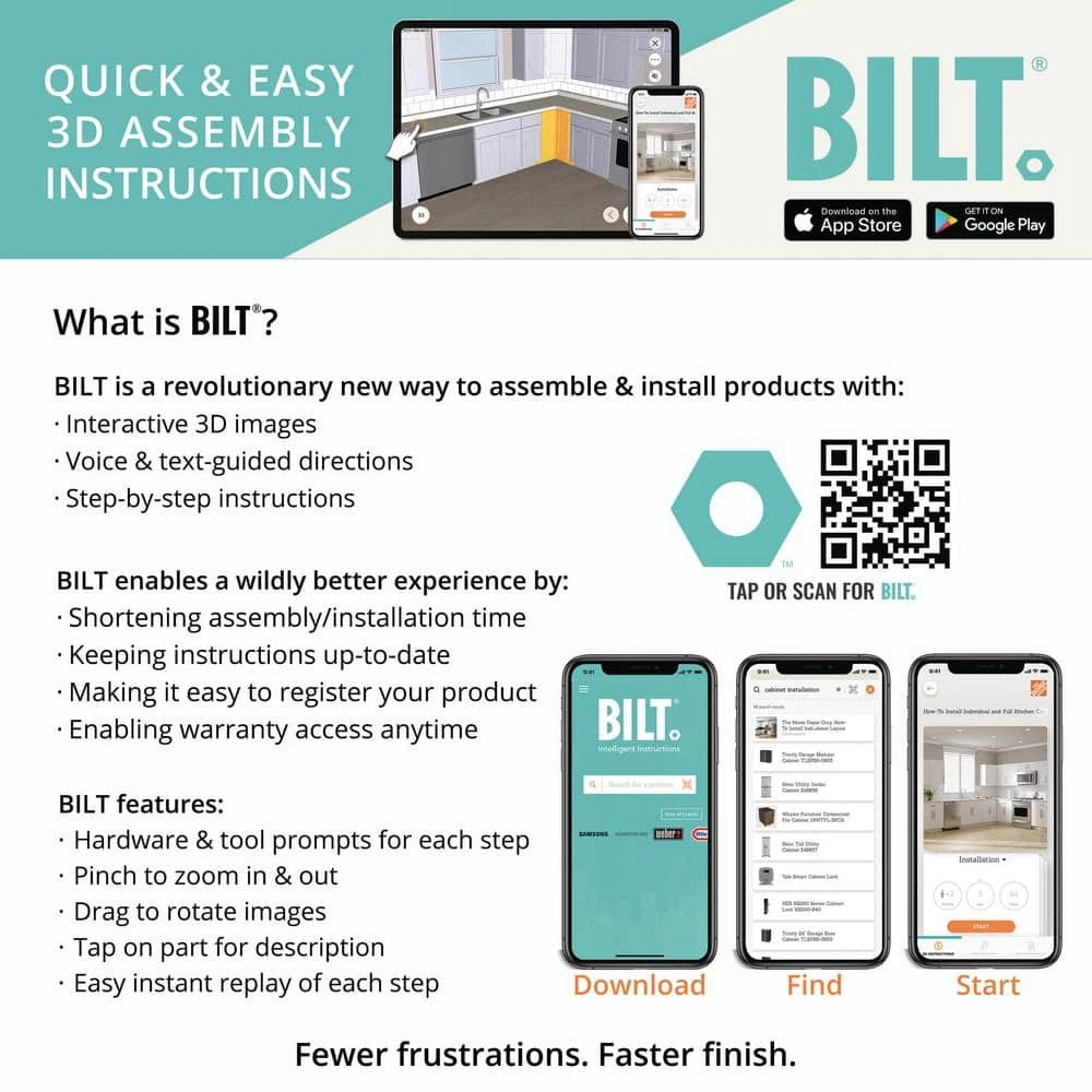 - Cabinets do not include hardware (decorative or installation)