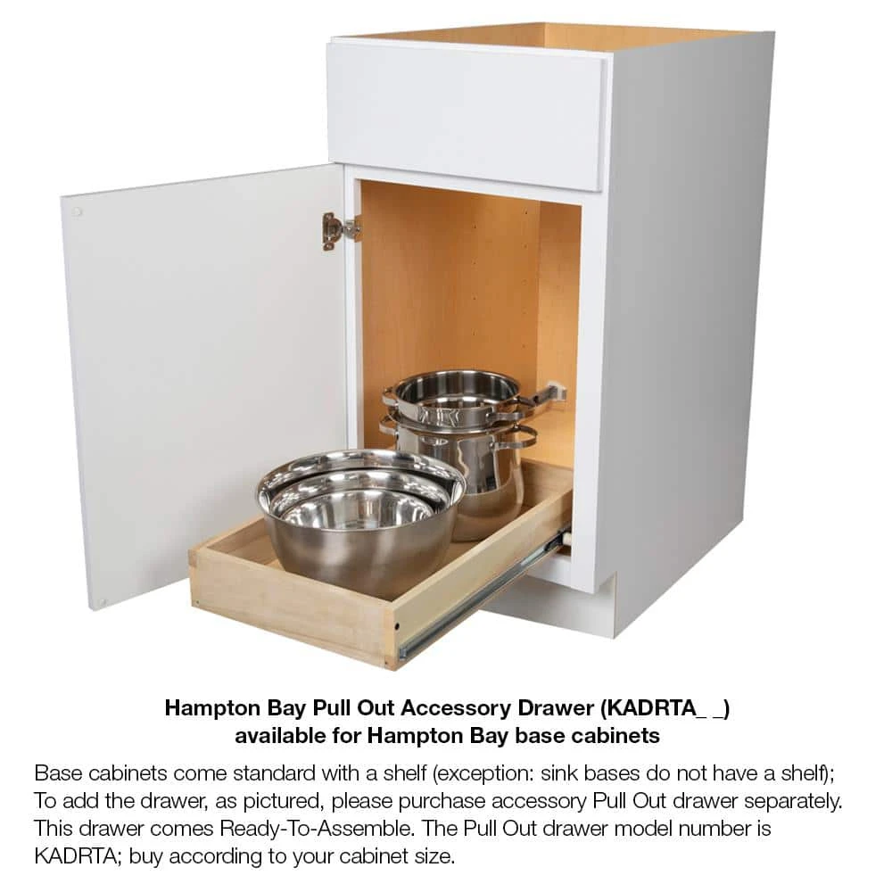 The unfinished wood exterior of the 24 in. Base Cabinet offers a wide variety of painting and staining possibilities. Featuring a flat insert panel, the cabinet’s wood doorframe delivers lasting strength. Its recessed-panel door design offers a classic, stylish look. The cabinet is pre-configured and fully assembled, saving you effort and making installation a breeze.