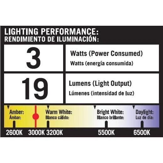 - Light output is 19 lumens. (10W incandescent equivalent)
