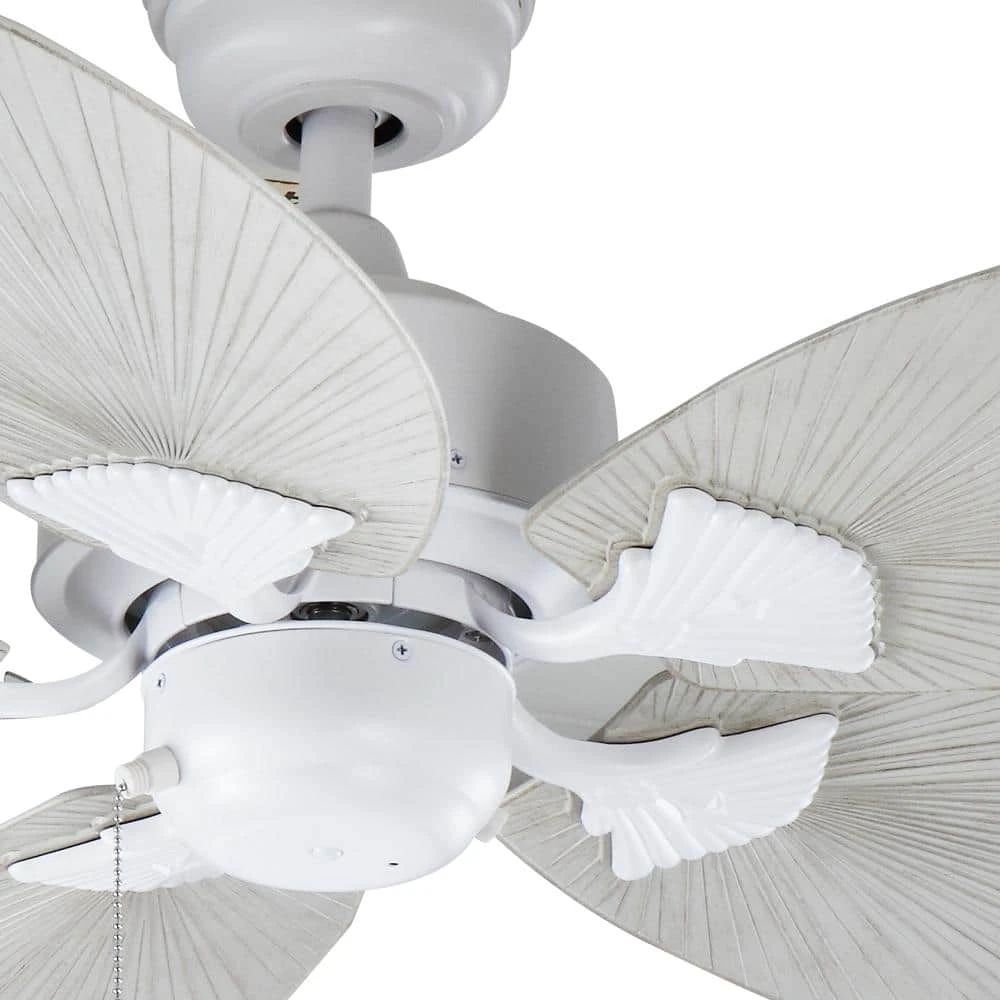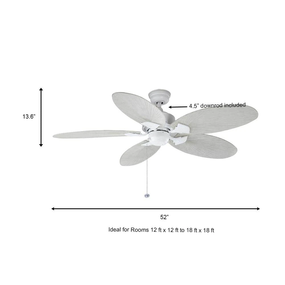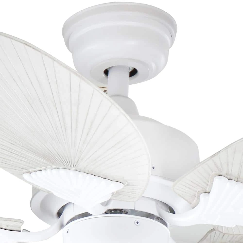 Make a room cooler with this Lillycrest 52-in. ceiling fan. For optimal airflow, it features a 3-speed reversible motor and a downrod. QuickFit installation with QuickInstall blades and mounting hardware make installation easy. A palm leaf-inspired design and distressed matte white blades produce a classic look.
