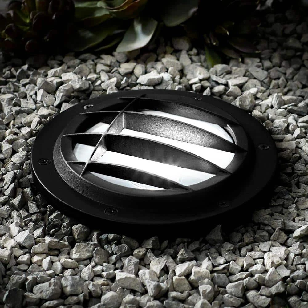 The Hampton Bay low-voltage well light is the perfect solution for illuminating landscape focal points. the bright 500 Lumens light shines directly upwards to cast a dramatic light on trees and other areas of interest. Constructed of cast aluminum and a clear glass lens, the well light is designed to withstand the outdoor elements. With integrated LED technology, the light is virtually maintenance-free with no bulbs to replace. Installation is easy with the included 12 in. of wire and the quick-connect wire connector. Designed for use with 12-Volt landscape lighting systems.