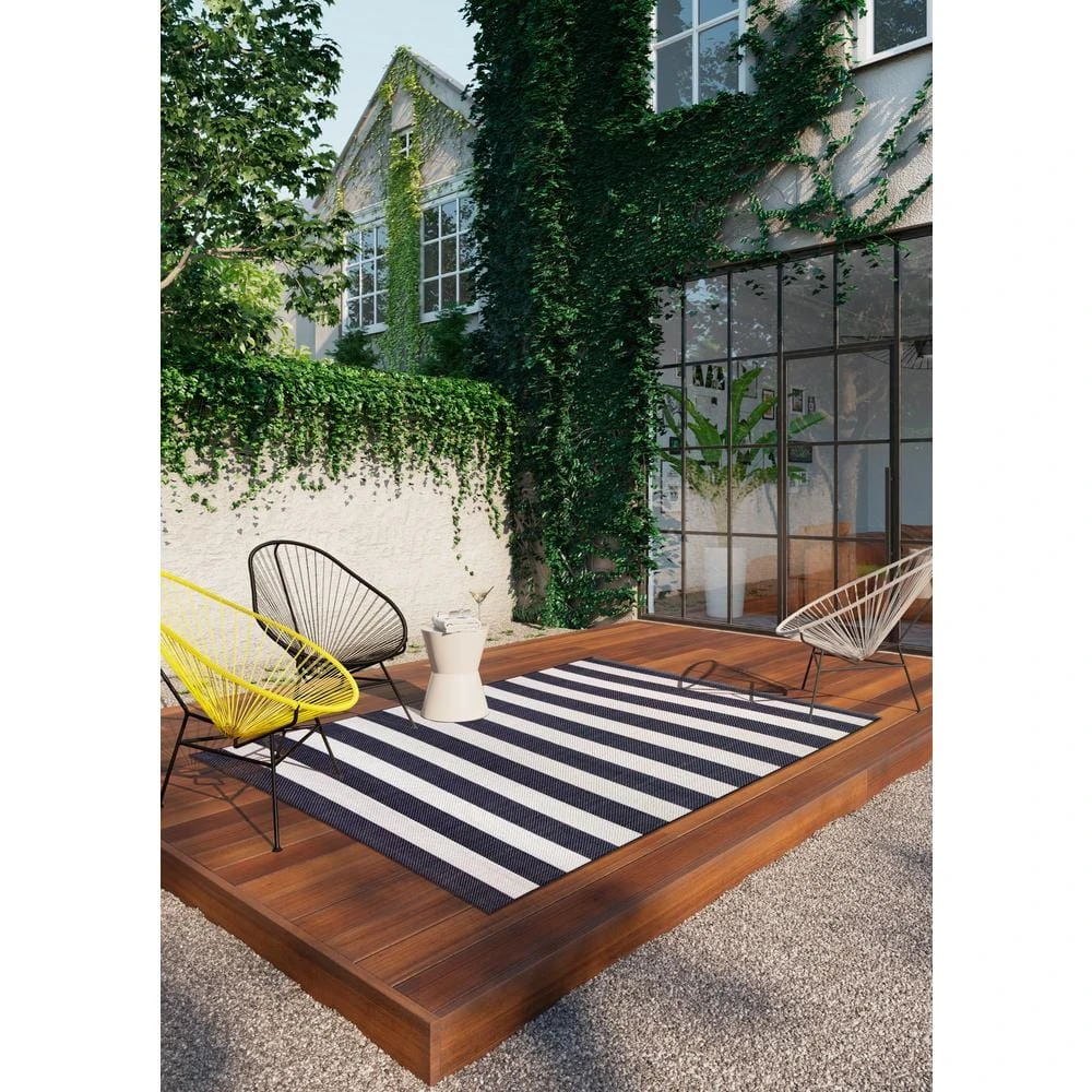 - 7 ft. 10 in. x 9 ft. flat woven indoor/outdoor area rug woven for maximum performance