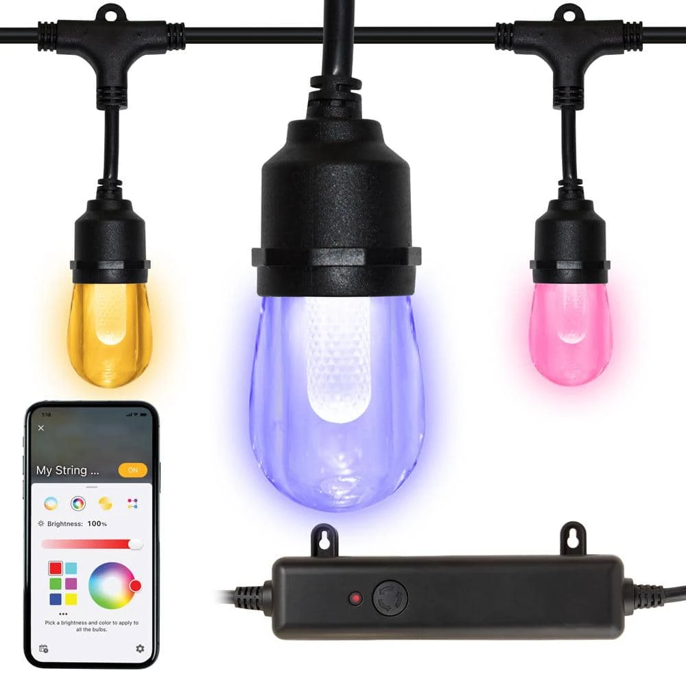Hampton Bay commercial grade Smart 24 ft. Color-Changing Plug-in String Lights lets you create unique colors for your team, party or occasion, or quickly switch to 1 of the fashionable built-in holiday themes, you’ll be able to select from millions of colors, or simply choose warm or cool white for a classic feel. Using your smartphone and the Hubspace app, you’ll be able to change its colors and patterns wirelessly and remotely. This string light set consists of 12 LED shatter-resistant bulbs, with a lighted length of 24 ft. and are interconnectable – purchase and directly connect up to 5 strings. Designed with durable acrylic Edison-style bulbs and tough, all-weather commercial insulation to perform and dazzle in all weather conditions.