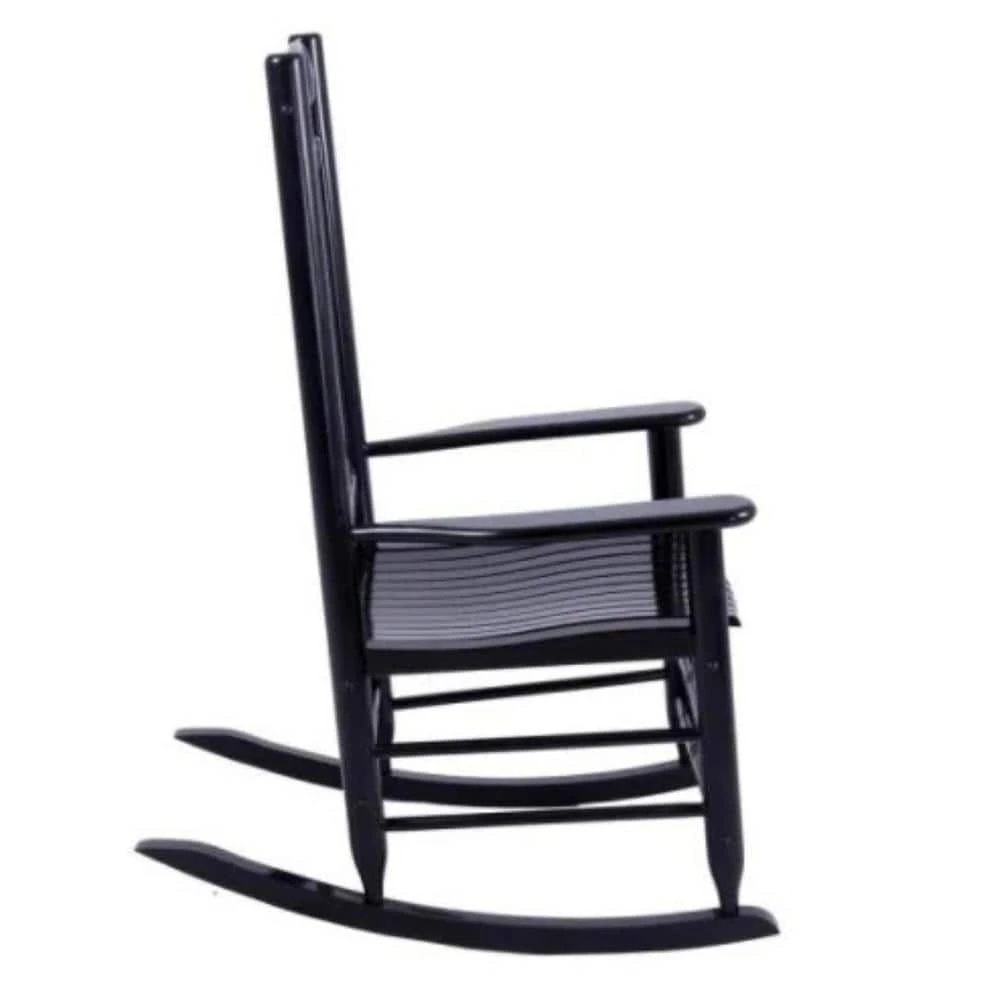 Give your porch a pop of character with this Hampton Bay black wood patio rocking chair. The sleek black finish creates a sophisticated look that easily complements a wide range of outdoor furnishings and color palettes, while the classic construction delivers a timeless appearance. A wooden frame helps provide a sturdy spot to take a seat and supports lasting outdoor use. Settle into this Hampton Bay black wood patio rocking chair and rock your worries away.