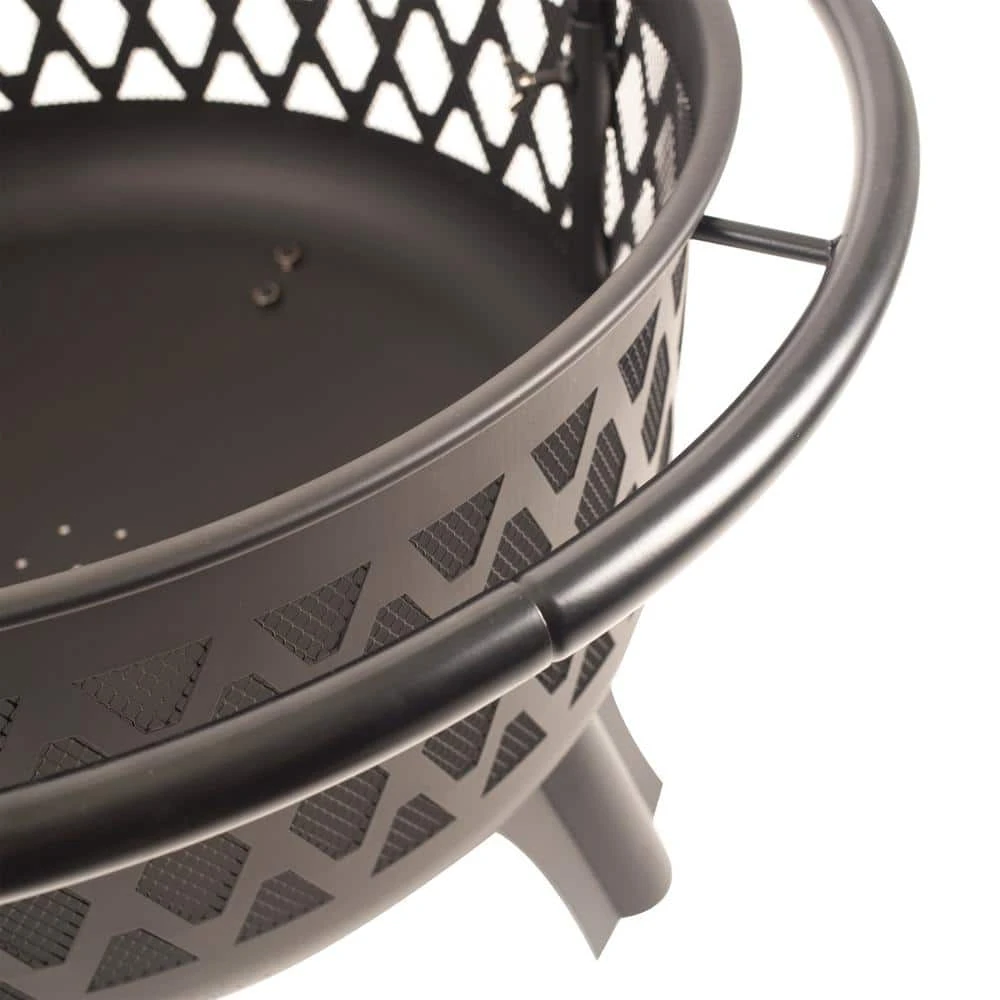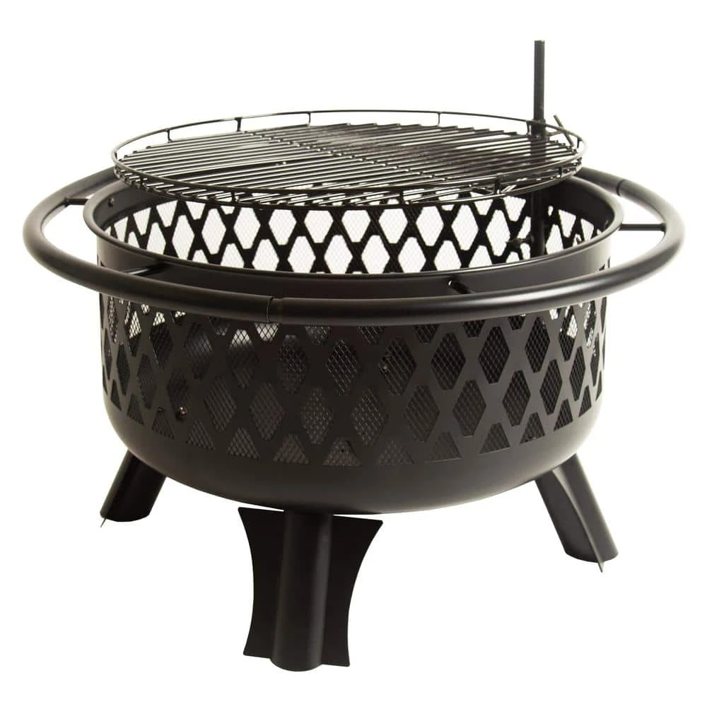 The Piedmont fire pit from Hampton Bay features a two-in-one design ideal for outdoor heating or grilling. Its unique features include a cooking grate for convenient grilling, a mesh screen for safety and a poker. The deep bowl design offers plenty of room for firewood and a 360° view of the fire.