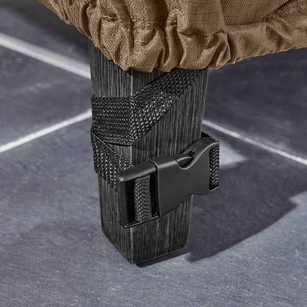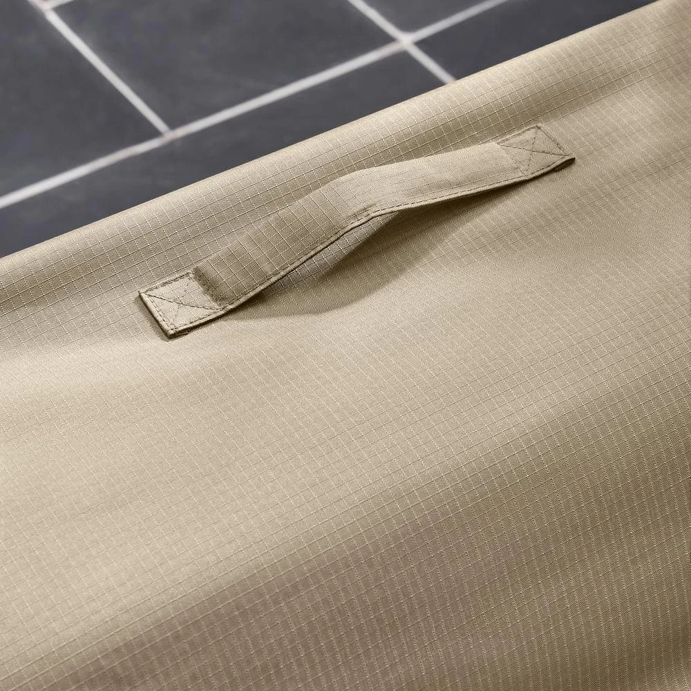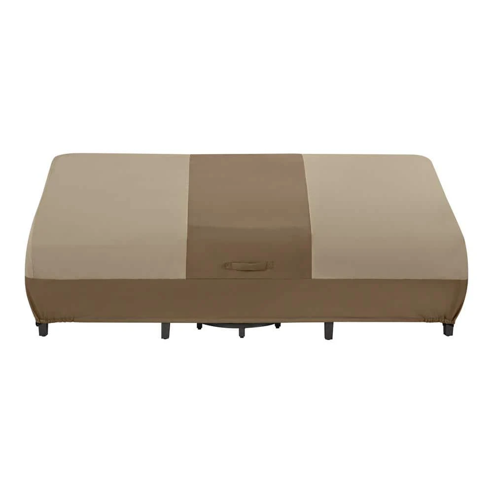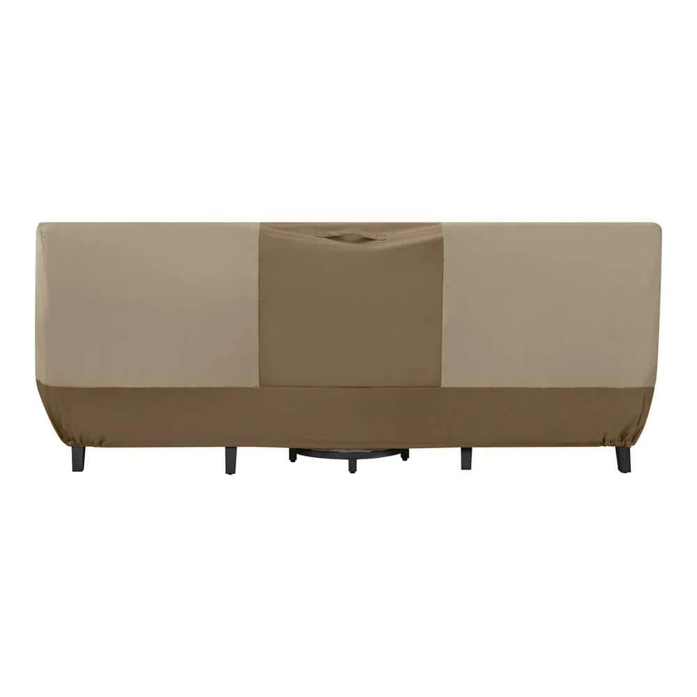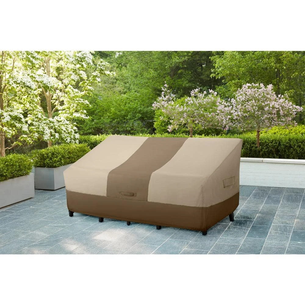 Keep dust, dirt and moisture at bay with this Hampton Bay patio furniture cover. The generous dimensions and rectangular shape provide compatibility with a range of outdoor furnishings, including sofas and love seats. A neutral beige color scheme adds a subtle look, while the durable polyester construction resists fading and exposure to water for lasting use. This Hampton Bay patio furniture cover boasts a lightweight design, making it easy to set up as you prepare your backyard for cold, wet weather.