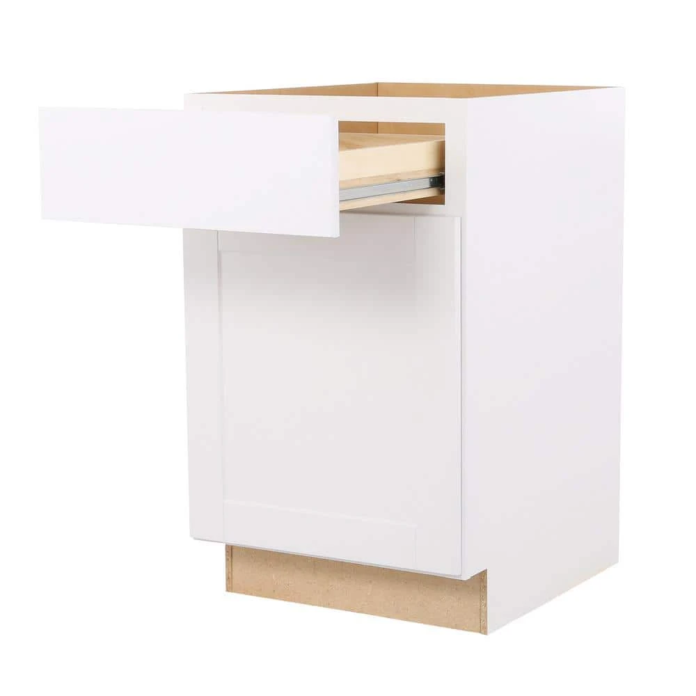 The furniture-quality finish on the Hampton Bay Base Cabinet adds warmth and beauty to your kitchen design. The cabinet’s 3/4 in. shelf thickness offers durability and its adjustable shelf design helps you maximize your storage space. The cabinet has a 4-sided hardwood drawer box that opens easily on smooth glides, giving you easy access to a convenient storage space.