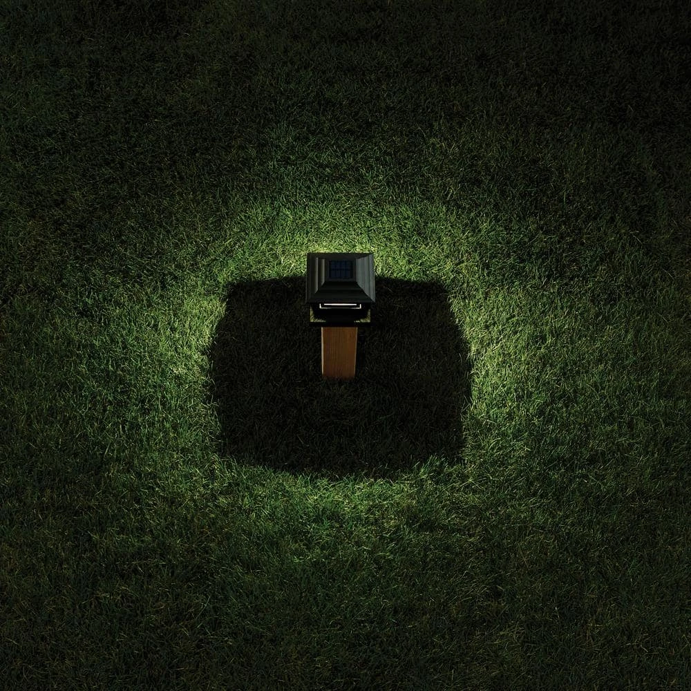 The 2-pack Hampton Bay Solar LED Post Caps creates bright 3000K warm white lighting that is perfect for illuminating exterior deck rails or fence lines. At 10 Lumens, you’ll enjoy 8 hours of uninterrupted illumination. The bronzes finish is applied to weather resistant polymeric materials for years of maintenance-free operation (no bulbs to replace!). Included with your LED deck light are all necessary hardware and battery(s).