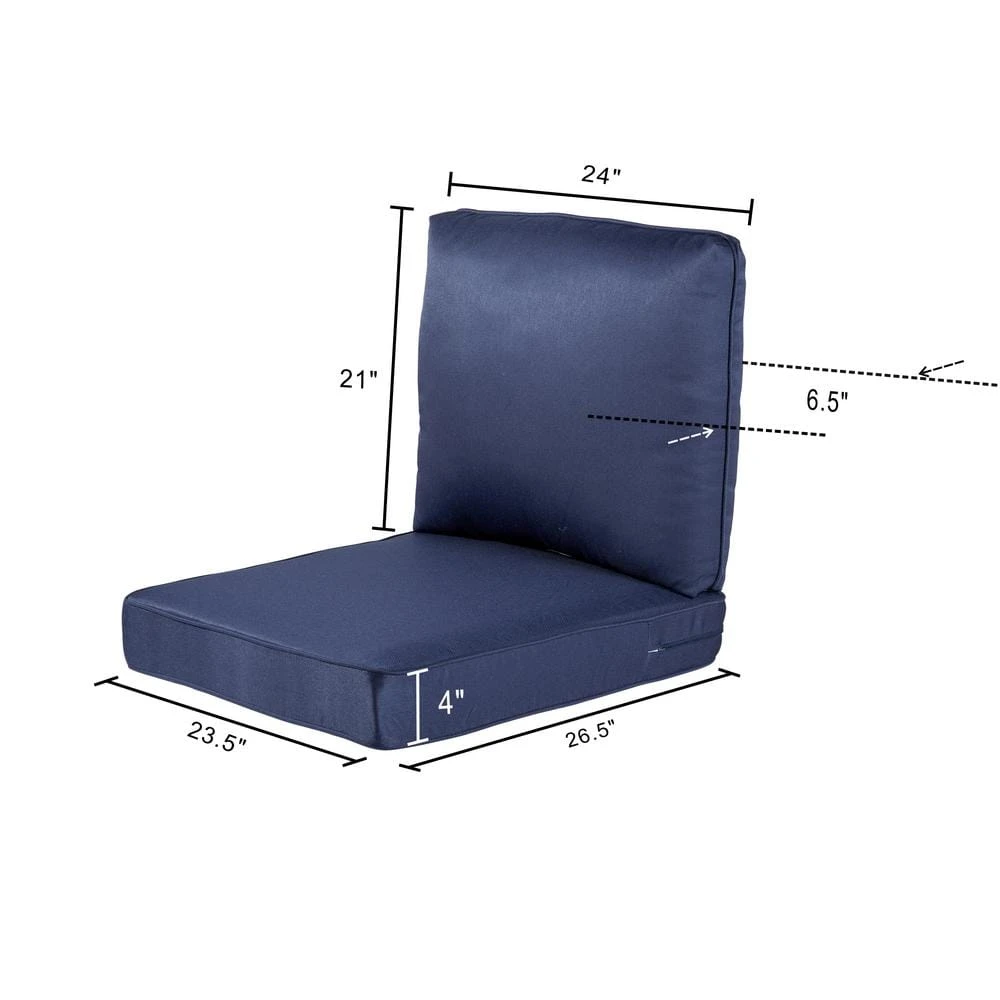 - Seat cushion dimensions: 23.5 in. x 26.5 in. x 4 in.