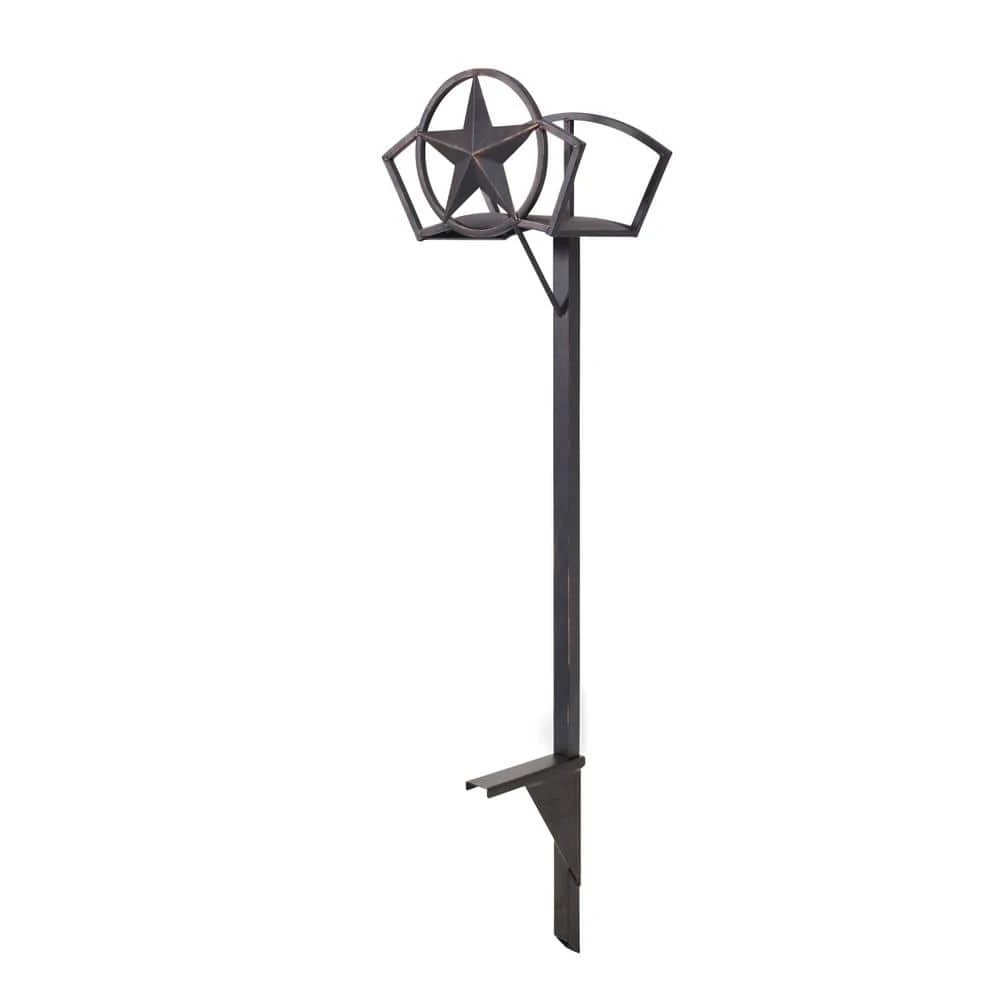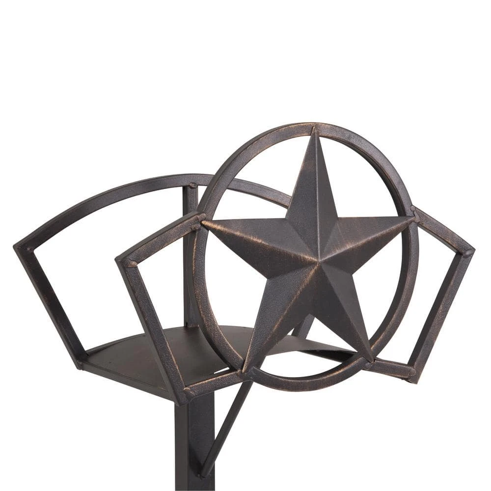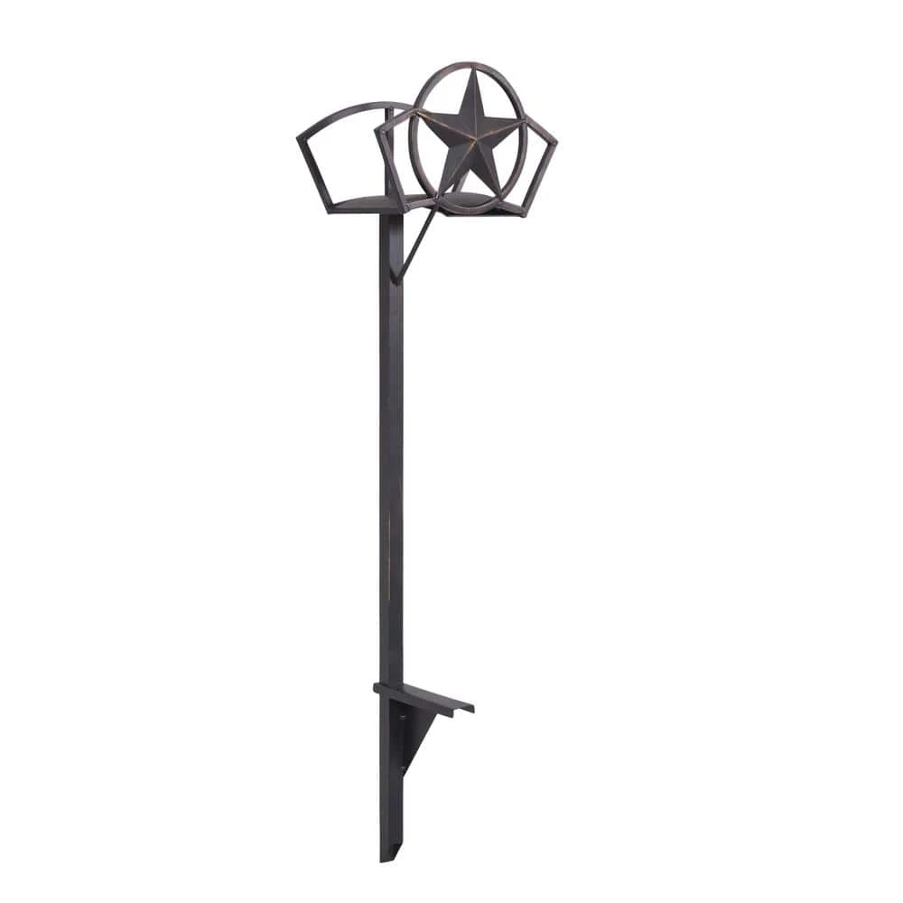 The Liberty Garden Products Star Hose Stand provides stylish and convenient hose storage. Featuring a durable steel structure and a beautiful antique bronze finish. Holds and stores a garden hose when not in use and is easily installed with an easy push in foot stake.