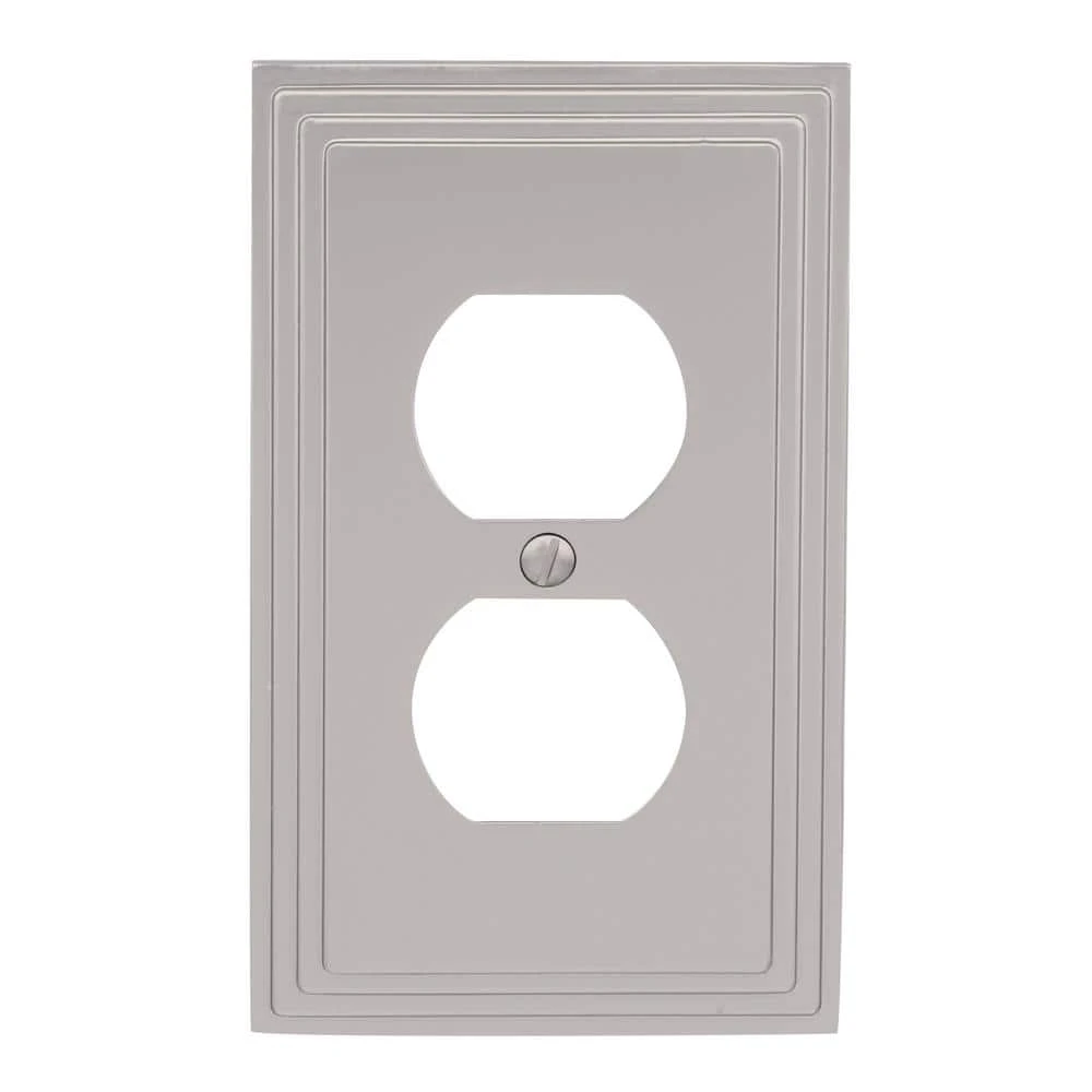Hampton Bay Tiered 1 Gang Duplex Metal Wall Plate – Satin Nickel