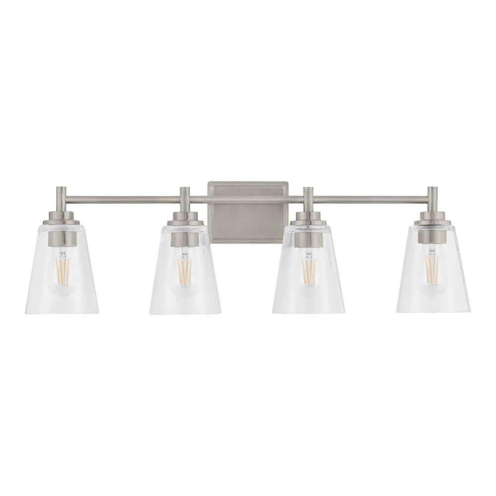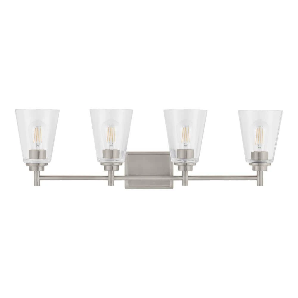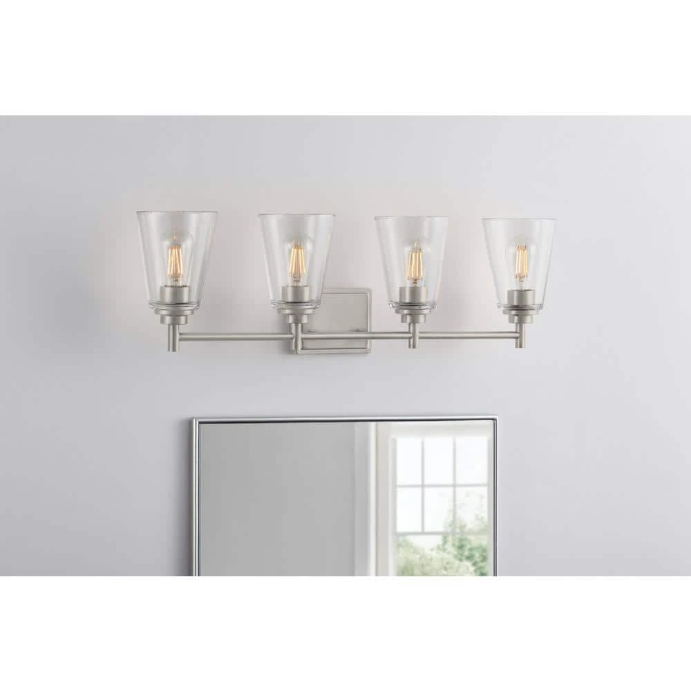 With an emphasis on streamlined and straightforward construction to complement any space, Wakefield is clean design at its best. Offering maximum appeal in a Brushed Nickel finish with Clear Glass shades ideal for filament bulbs, the details merge the best of Traditional and Modern styles. This fixture is quality built to last for-years to come.