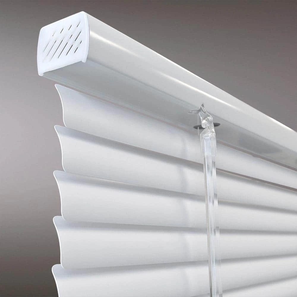 These 1 in. Cordless Vinyl Blinds by Hampton Bay are a safe and affordable choice to regulate light into any room. Vinyl blinds are resistant to heat and moisture, and are perfect for kitchens, bathrooms, and garages. The room darkening curved slats blocks 93% of light. These blinds are great for any home or office. For maximum light and privacy control, rotate the slats downward to ensure proper closure.