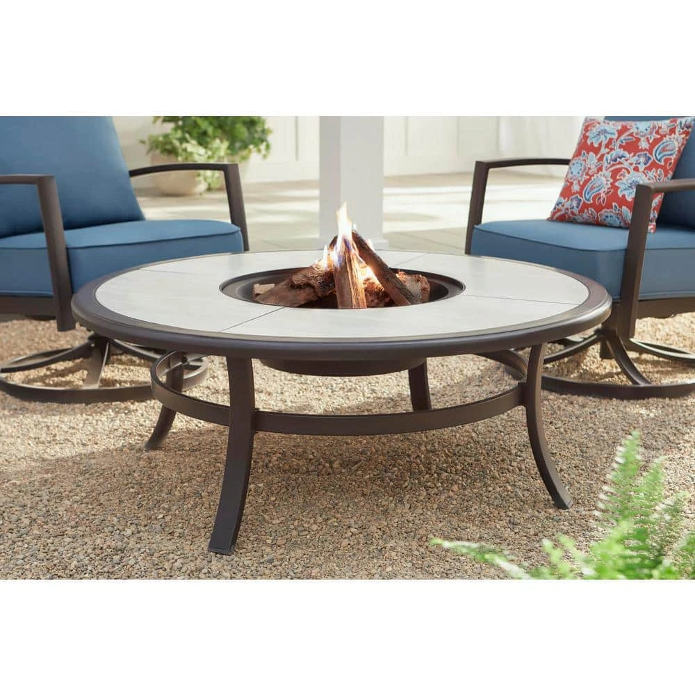 Enhance your outside area with this Whitfield wood burning fire pit table. Ideal for a patio or sunroom, it features an easy-to-clean natural stone-look table top. It comes with a grate for safety, and a drain hole in the included fire bowl stops rust for lasting use.