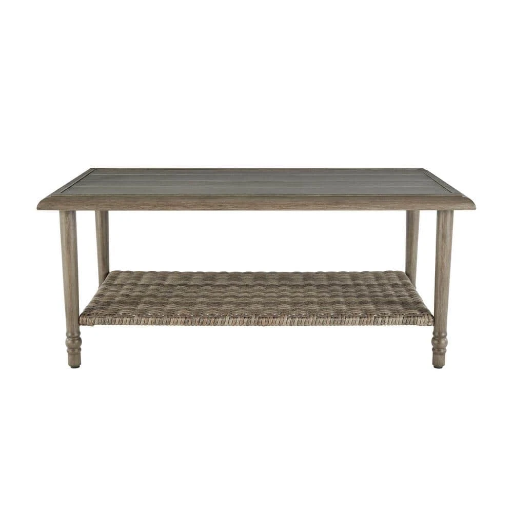 Refresh your outdoor living space with this stylish coffee table. Crafted with a gray, reclaimed finish over a powder-coated steel frame, this versatile piece adds a modern design element to your patio or deck. It features high-quality, weatherproof material to ensure lasting use. This charming outdoor table is easy to assemble and to care for.