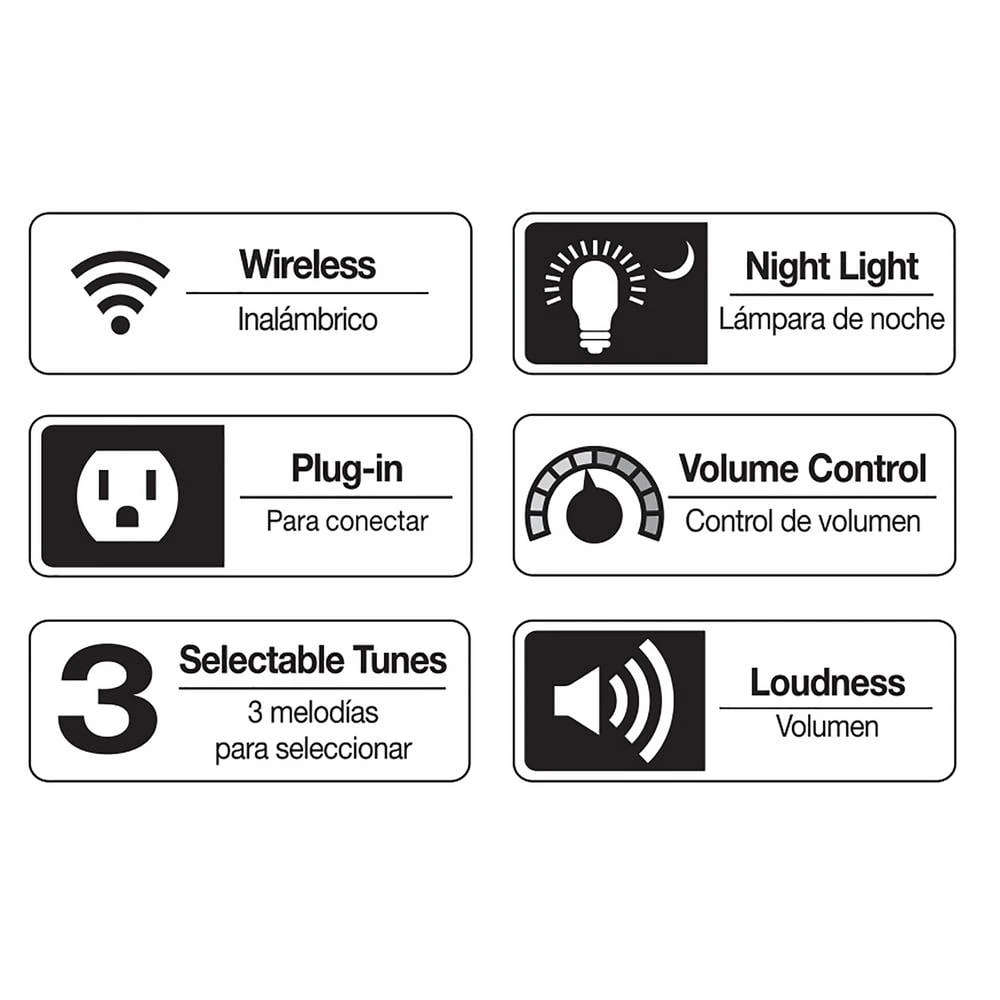 This Defiant Wireless Plug-In Door Bell Night Light Kit illuminates automatically when it gets dark, making it the perfect solution for hallways needing some extra light. Equipped with an LED night light, the wireless doorbell’s light will automatically shut off when light levels increase. It features volume control, three selectable tunes and a wireless push button. Plugging into any standard wall socket, it is compatible with all other Defiant wireless push buttons, door bells and alerts.