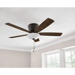 Hampton Bay Hawkins III 44 in. LED Indoor Brushed Nickel Flush Mount Ceiling Fan with Light