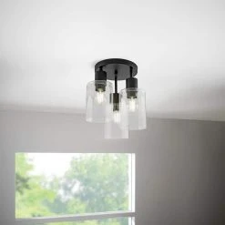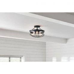 Hampton Bay Southbourne 15.5 in. 3-Light Matte Black Rustic Farmhouse Semi-Flush Mount