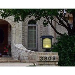 Hampton Bay Brimfield 18 in. Aged Iron 3-Light Outdoor Post Lamp with Clear Seedy Glass Shade